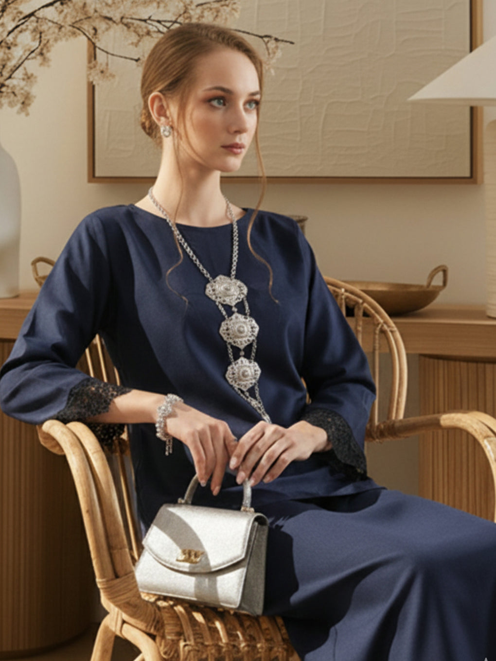 BAJU KURUNG KEDAH PESAK HALLIE (NAVY BLUE)