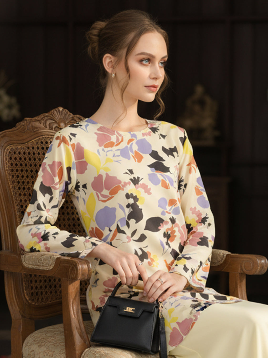 BAJU KURUNG MODEN LORENA (PALE YELLOW)