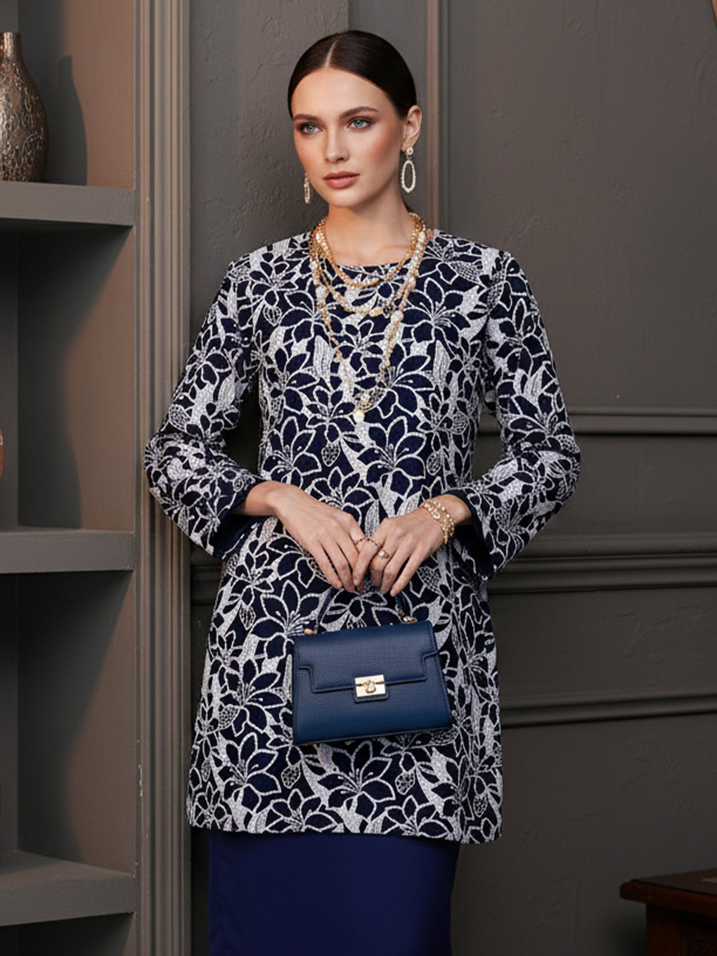 BAJU KURUNG PAHANG MODEN GIANNA (NAVY BLUE)