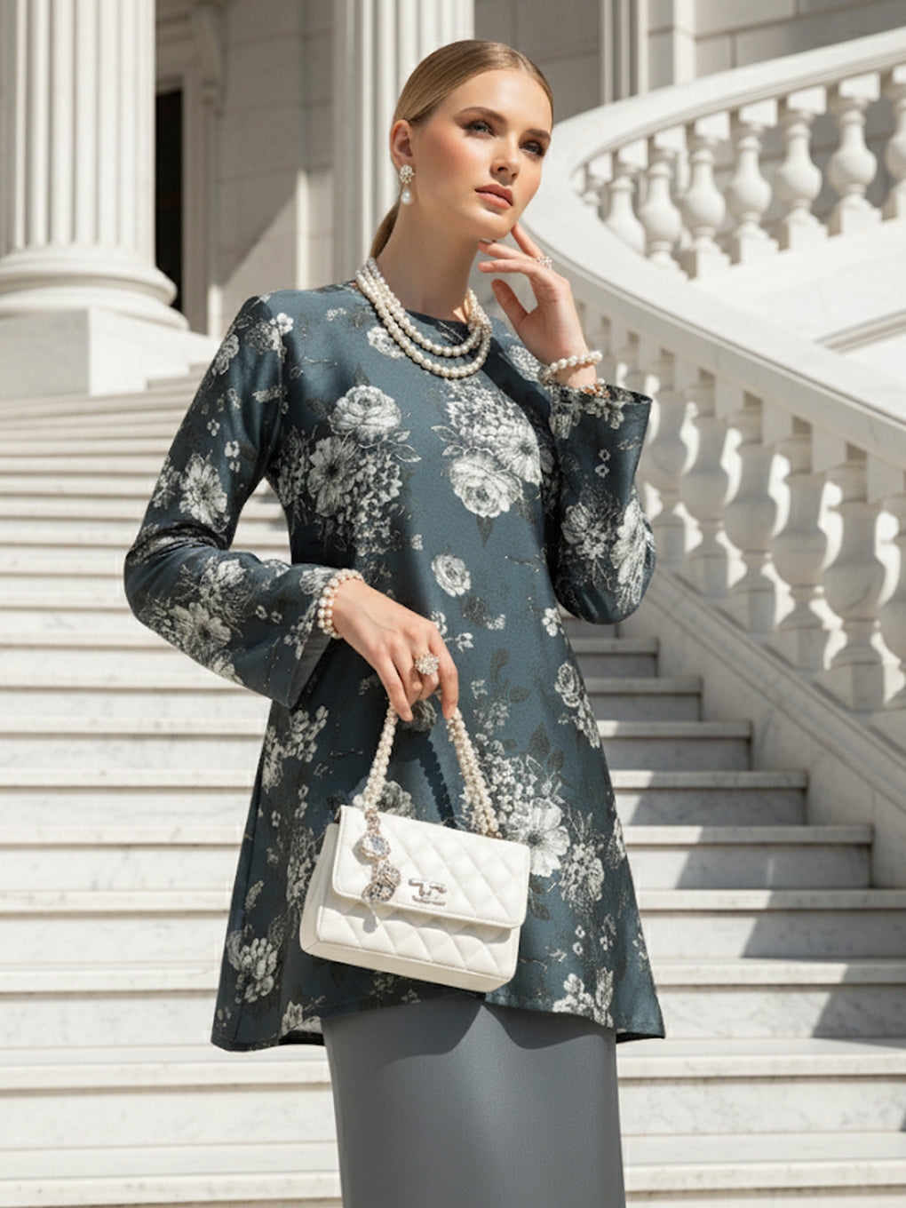 BAJU KURUNG PAHANG MODEN DELANEY (DARK GREY)