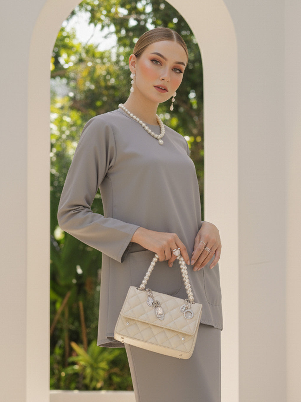 BAJU KURUNG KEDAH DAVIKA (SILVER GREY)
