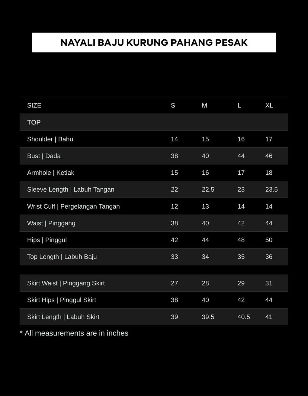 Skirt Length | Labuh Skirt 39 39.5 40.5 41