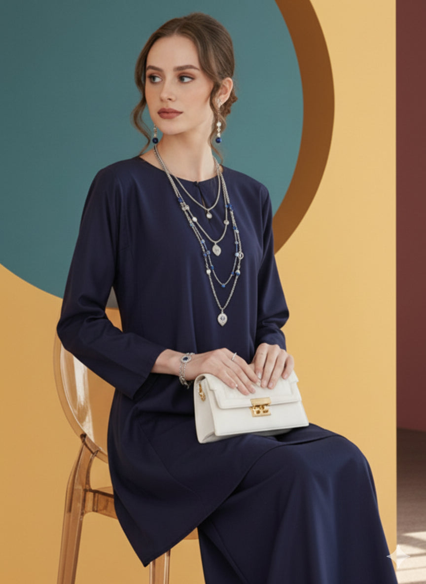 BAJU KURUNG PAHANG PESAK DEANDRA (NAVY BLUE)