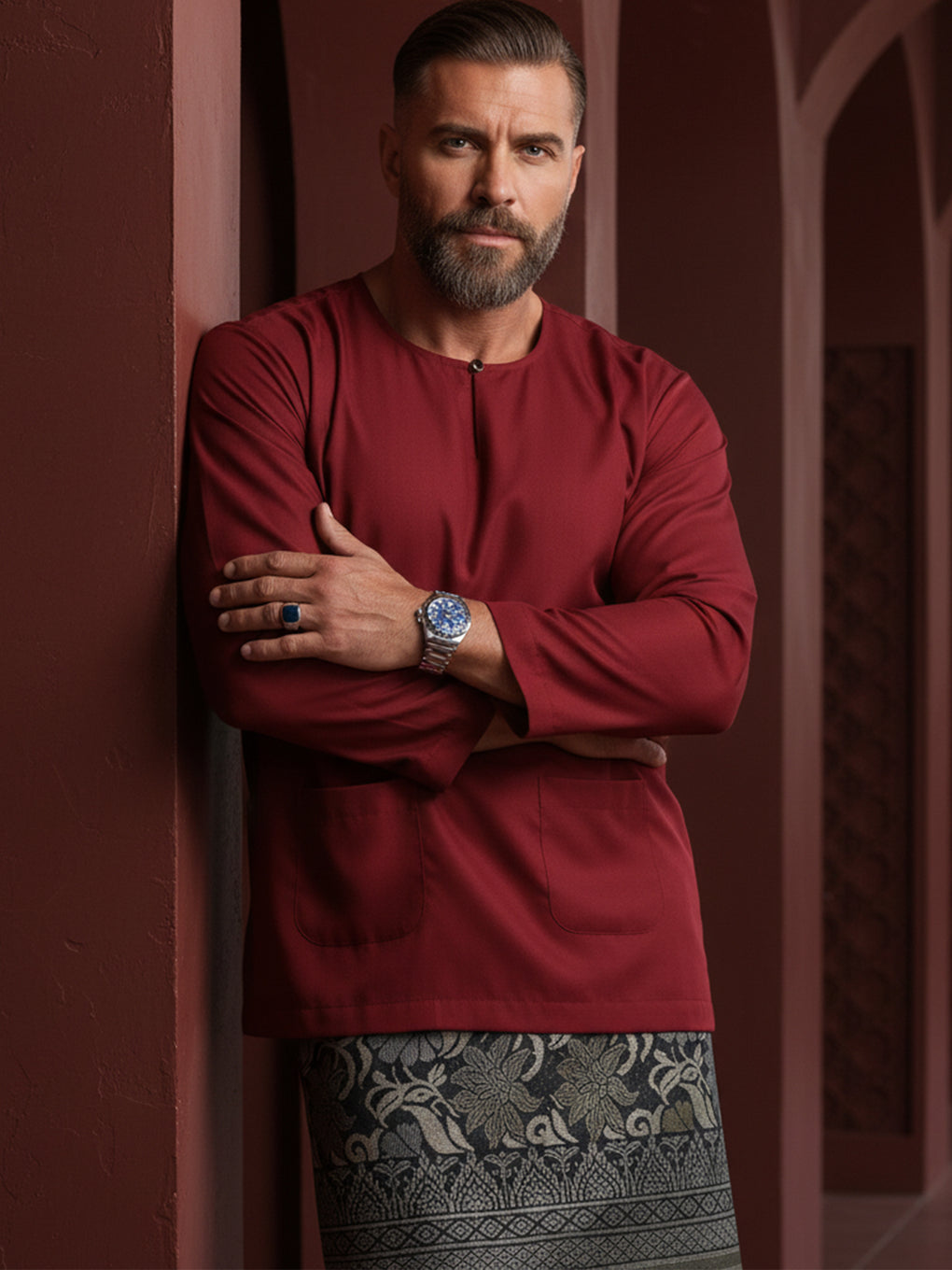 BAJU MELAYU PESAK MEGAT R/FIT (MAROON)