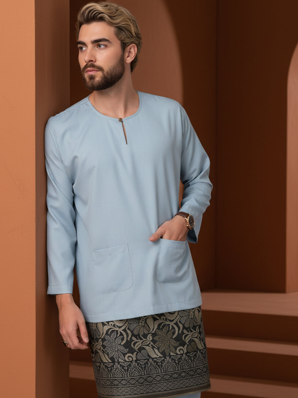 BAJU MELAYU PESAK MEGAT R/FIT (POWDER BLUE)