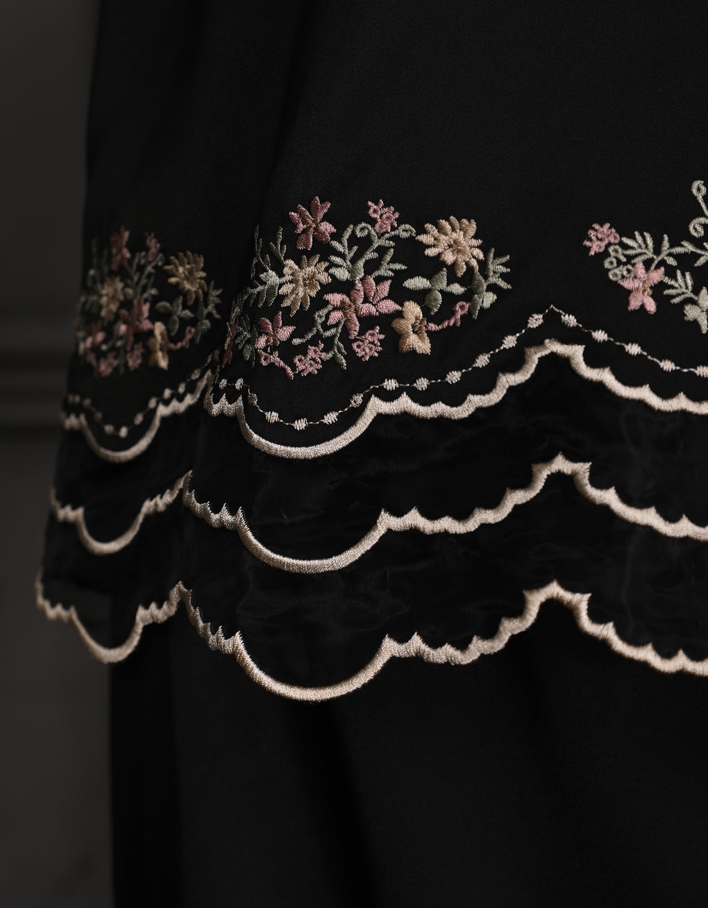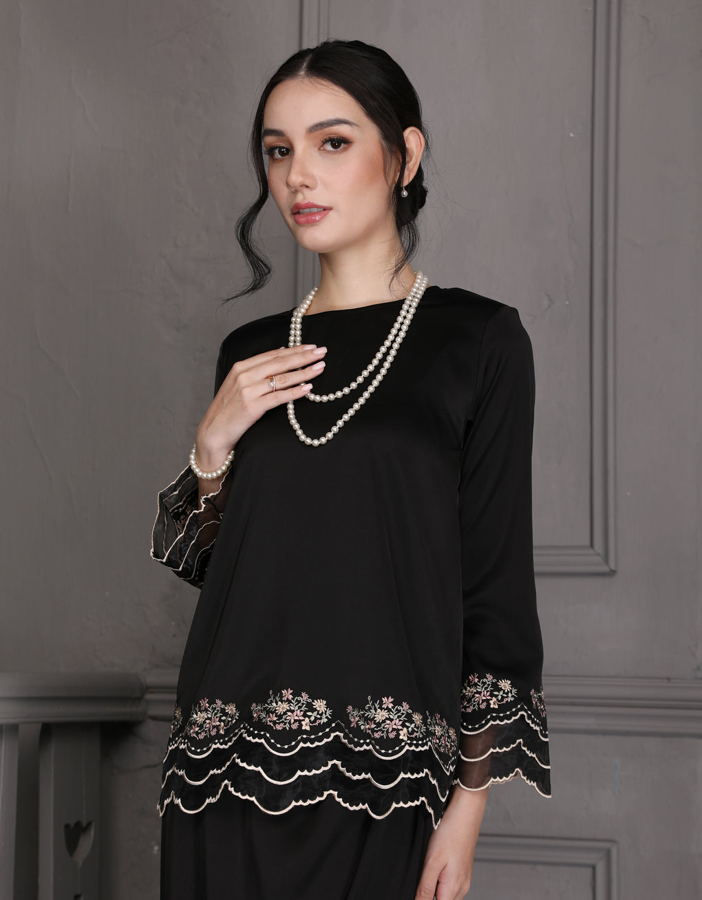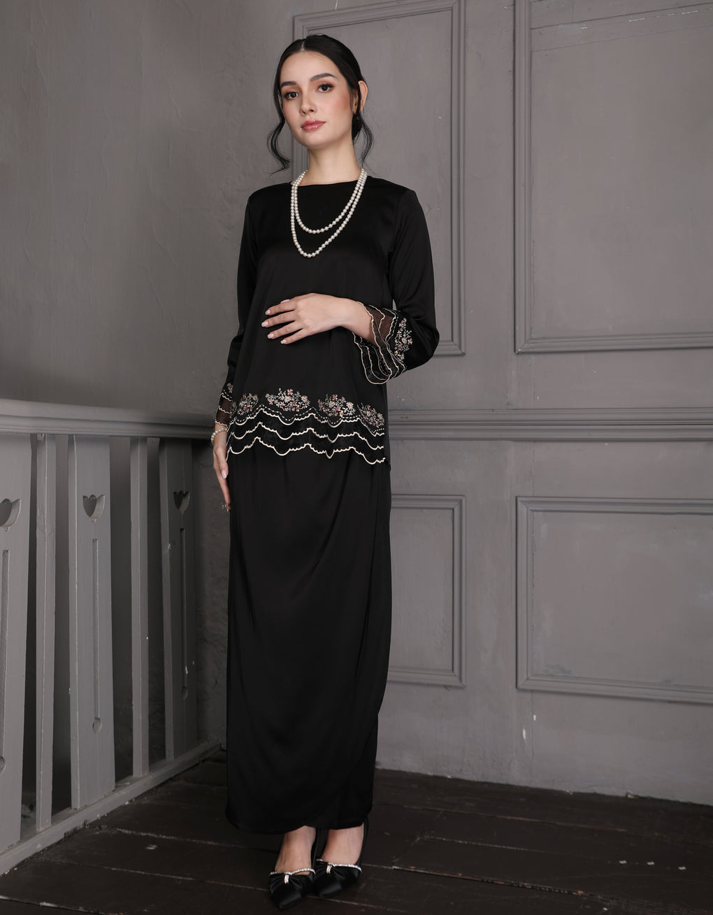 'Baju Kurung Moden Harriet’ combines classic charm with modern elegance. Made from silky Italian satin and detailed with fine multicolor embroidery on the sleeves and hem, it looks stunning, luxurious, and feminine — perfect for formal events or graceful daily wear.