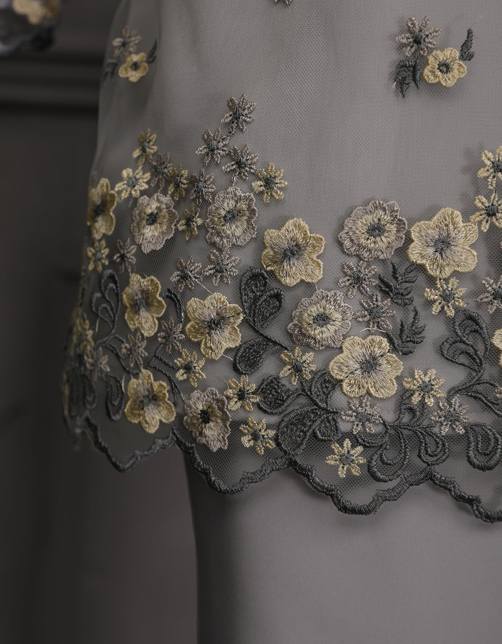 Crafted in a timeless Moden cut, this piece offers a comfortable fit. Delicate floral embroidered lace creates a graceful blend of femininity and elegance perfect for any occasion.