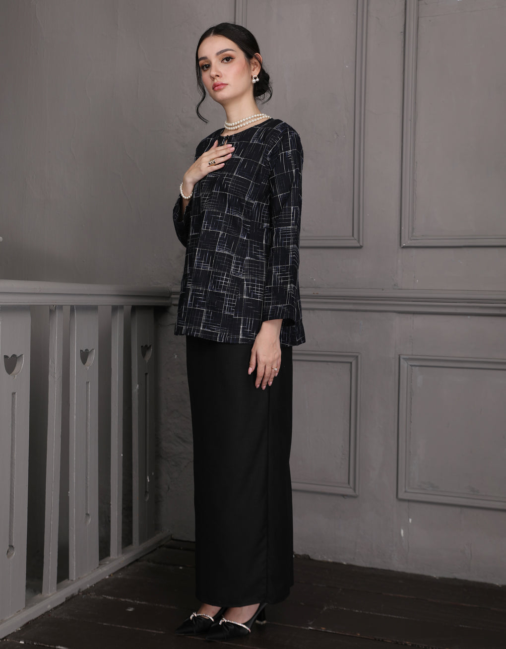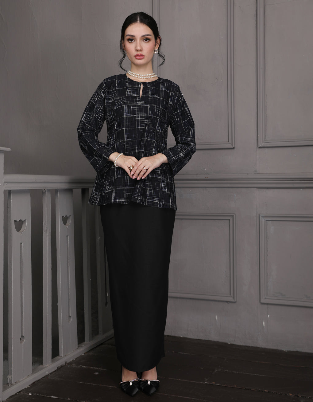BAJU KURUNG KEDAH PESAK KENDRA (BLACK)