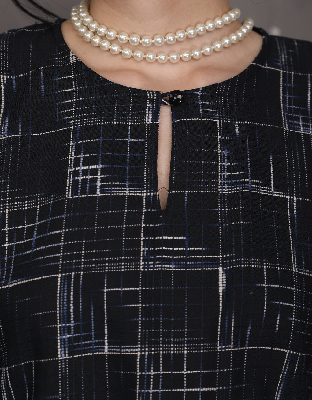 ✿ Notched round neck with button