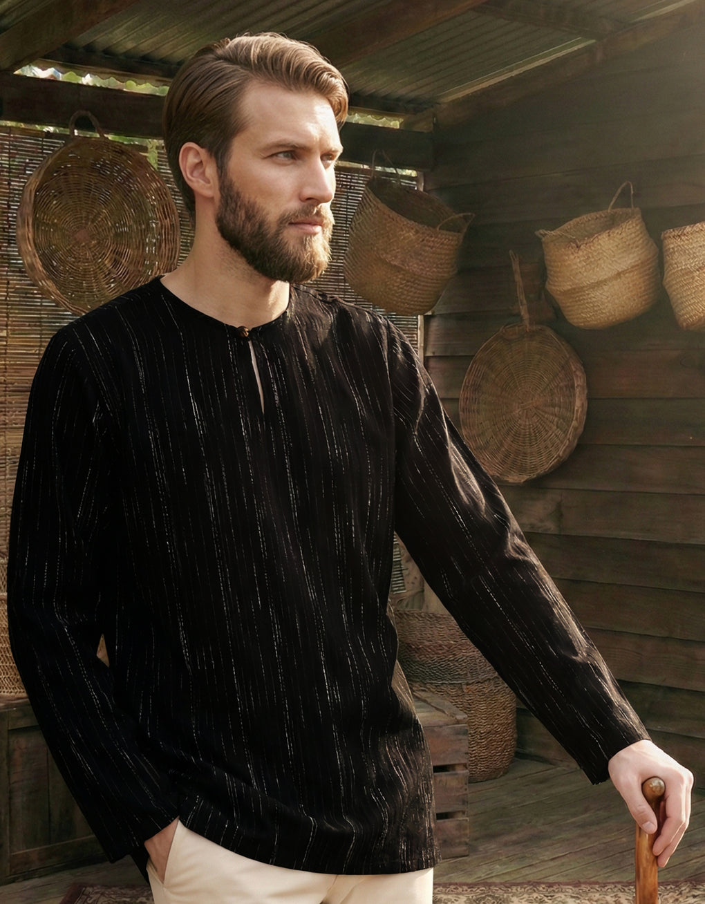 Elevate your style with premium cotton regular fit round neck kurta. The matched coloured buttons and long sleeves add a touch of sophistication, while the side pockets provides functionality and fashion. Perfect for any occasion, this kurta effortlessly combines comfort and elegance.