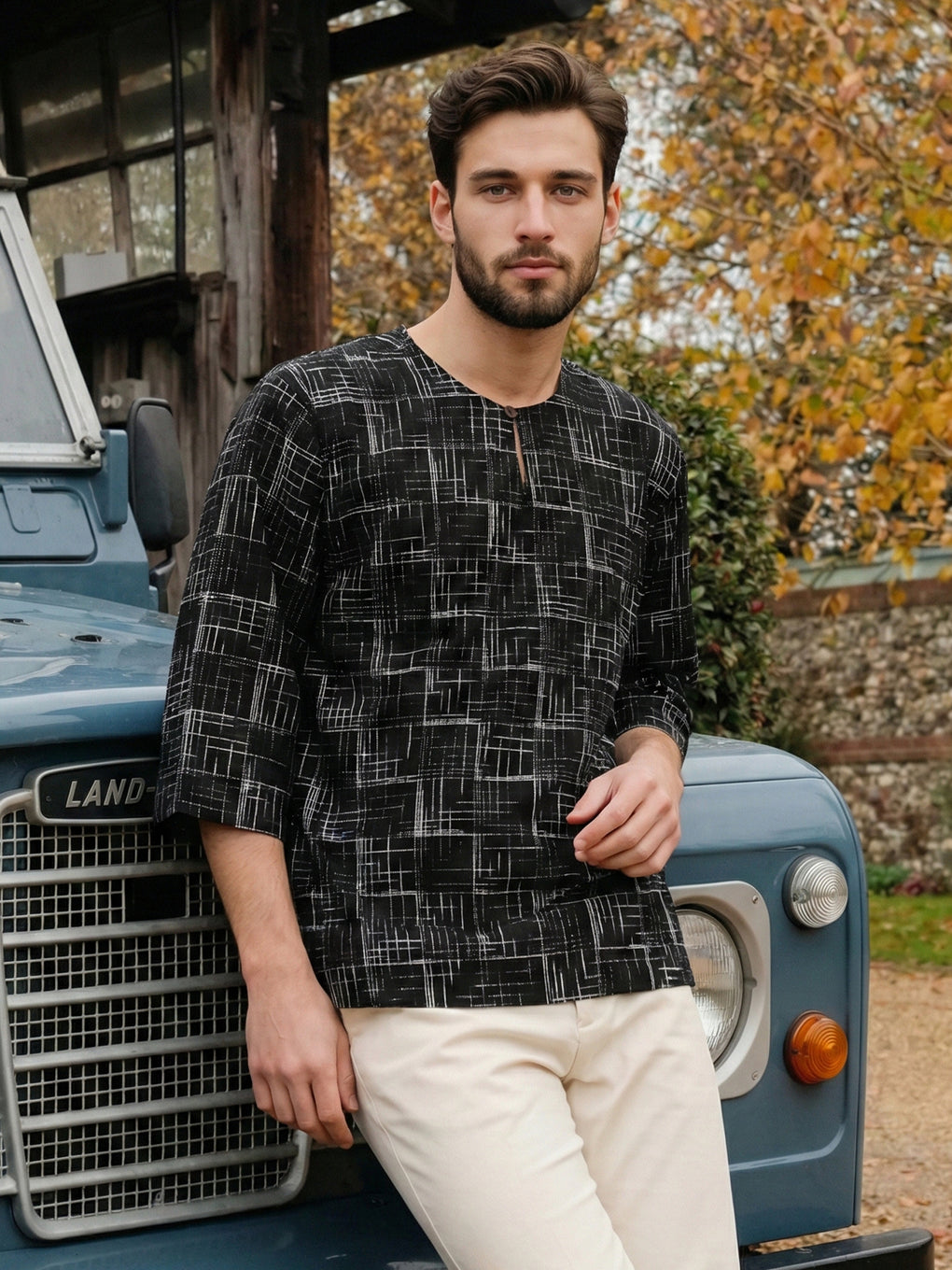 Crafted from premium cotton slub, this round-neck kurta delivers breathable comfort for everyday wear. The three-quarter sleeves offer ease of movement, while strategically placed side pockets enhance wearability without disrupting the clean silhouette. Ideal for layering or wearing solo, it adapts effortlessly from casual daywear to more polished settings, making it a dependable wardrobe staple for those who value both comfort and refined aesthetics.