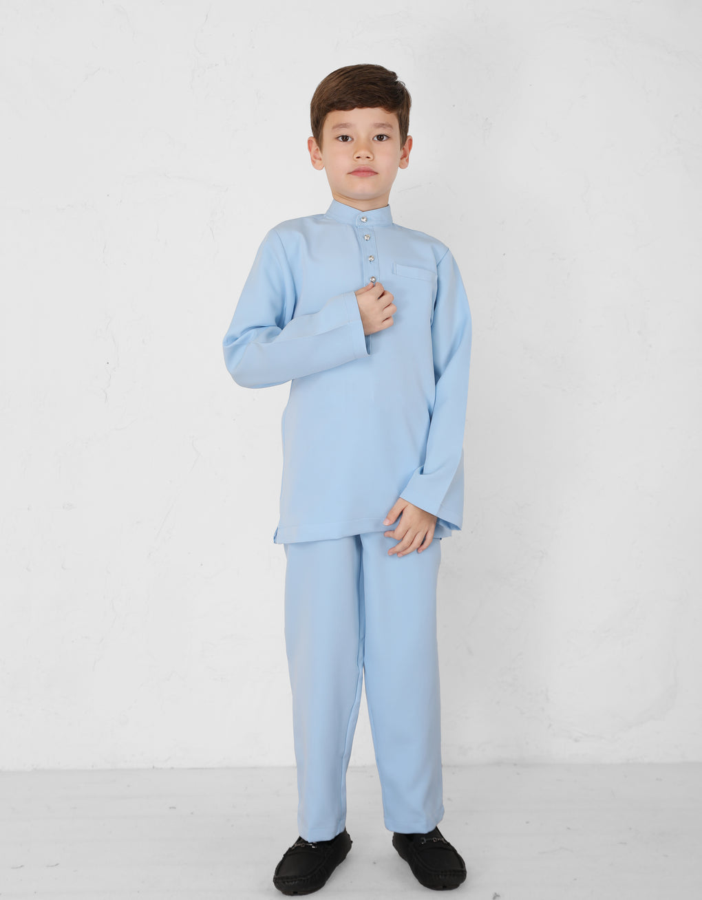 A Modern take on the classic Baju Melayu Cekak Musang - clean lines, tailored fit, and refined details for a sleek traditional look. Perfect for Raya, Wedding or formal events. This timeless piece blends heritage with cotemporary style.