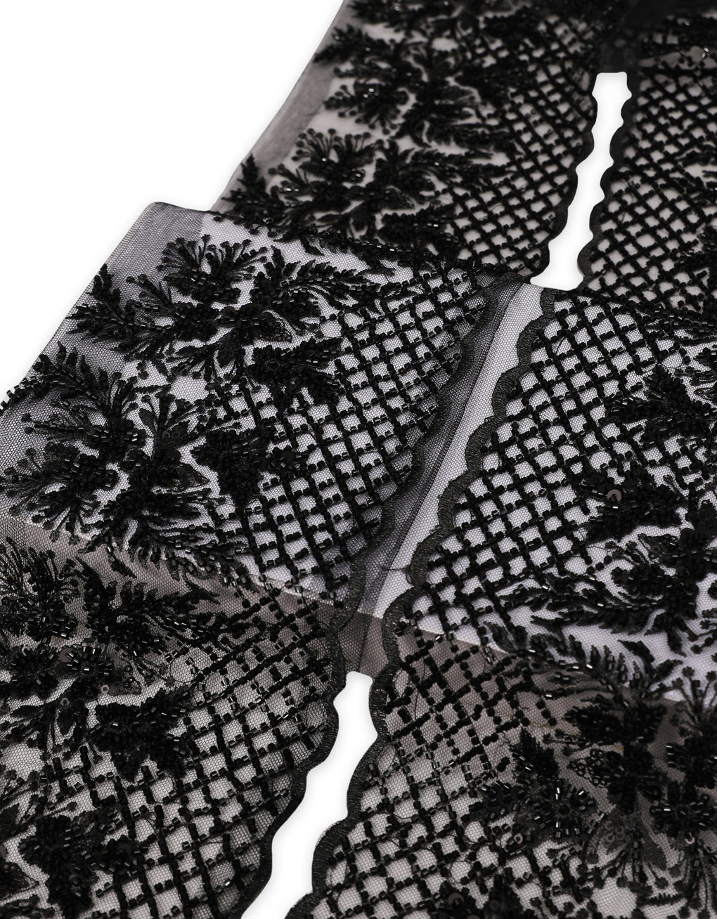 Beaded Border lace  is a fine fabrics that comes in floral and abstract pattern and also with minimalist sequins and beads. Giving the highest recognition for the exquisite vibe of femininity to the wearer. It also has a good drapability.