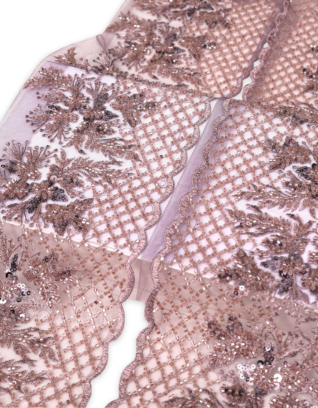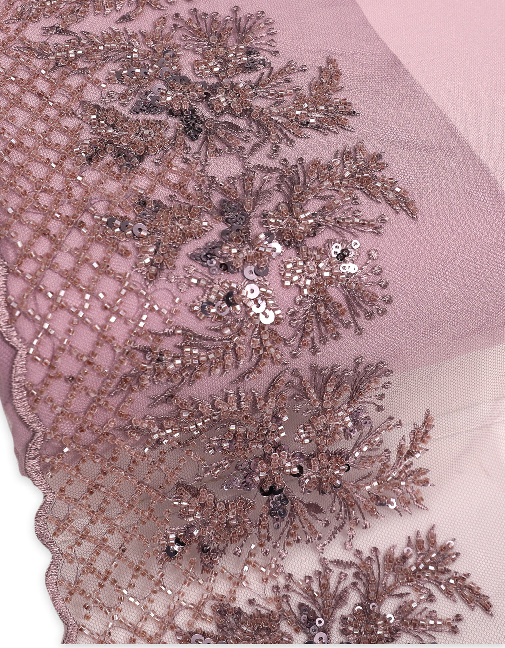 Beaded Border lace  is a fine fabrics that comes in floral and abstract pattern and also with minimalist sequins and beads. Giving the highest recognition for the exquisite vibe of femininity to the wearer. It also has a good drapability.