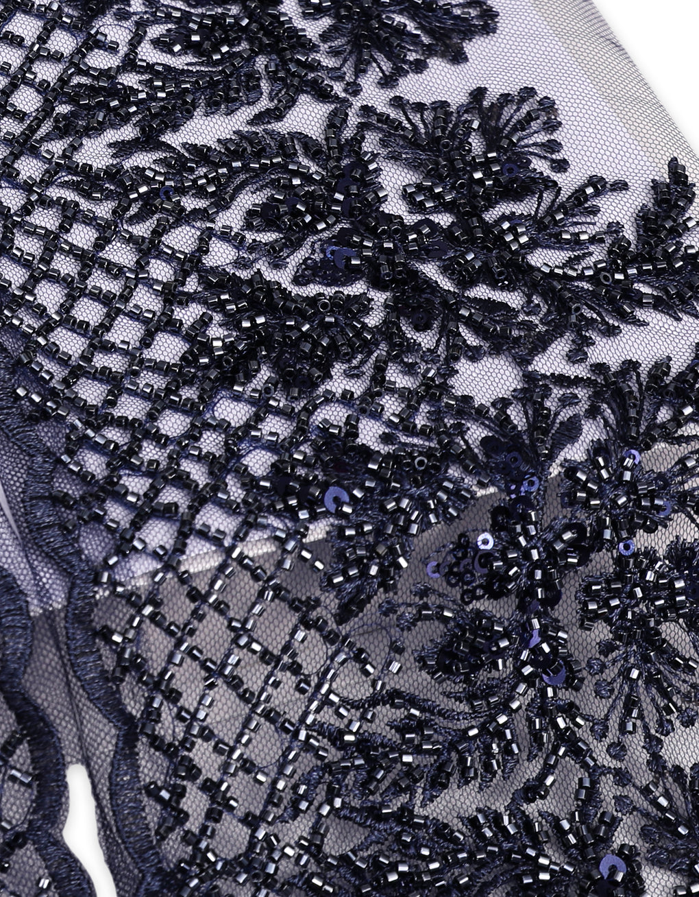 Aurora Blossom Beaded Border Lace - (Navy Blue)