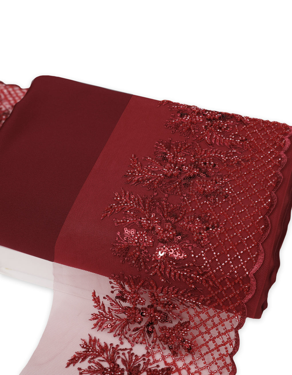 Aurora Blossom Beaded Border Lace Mix and Match - (Maroon) + Satin (Maroon)