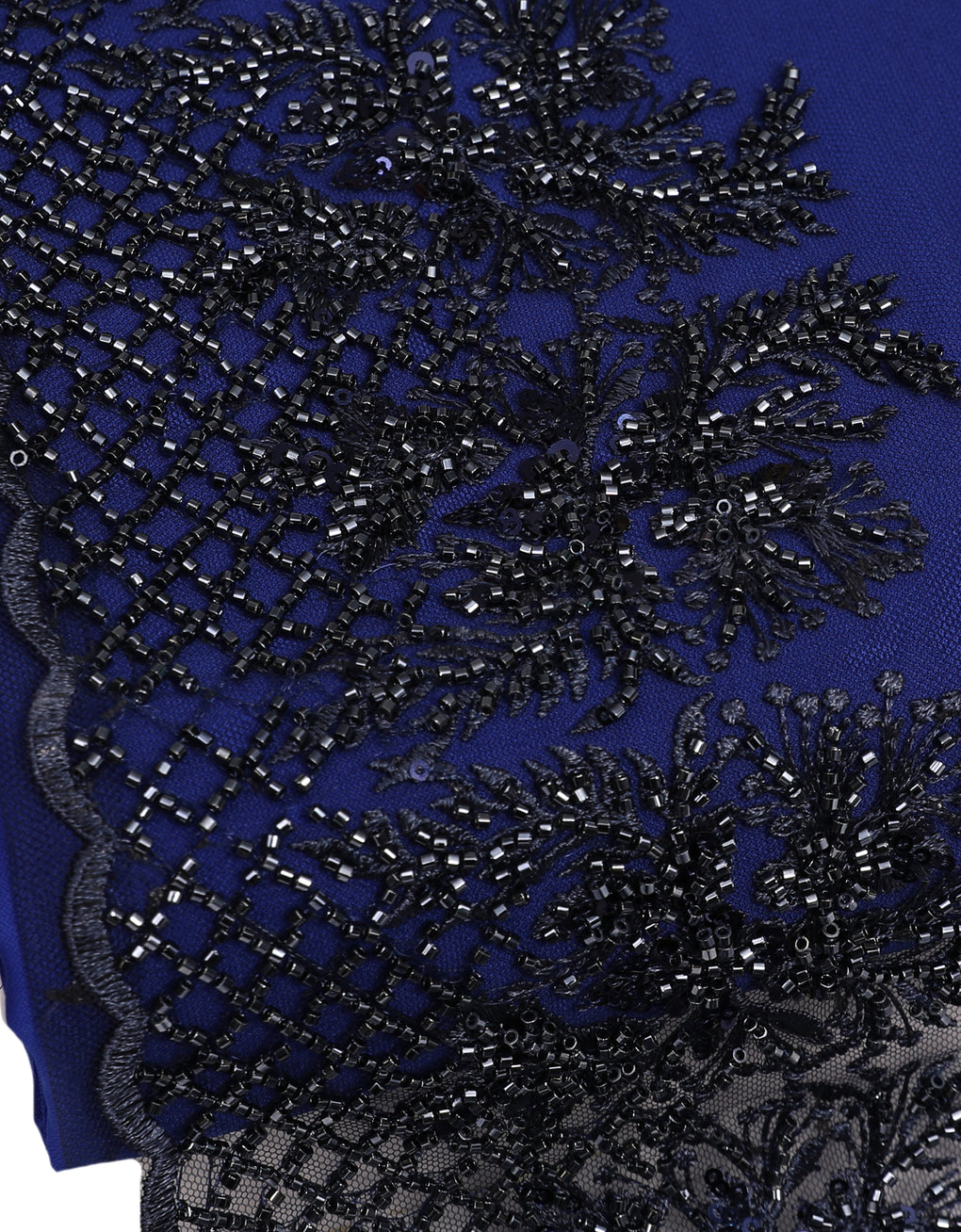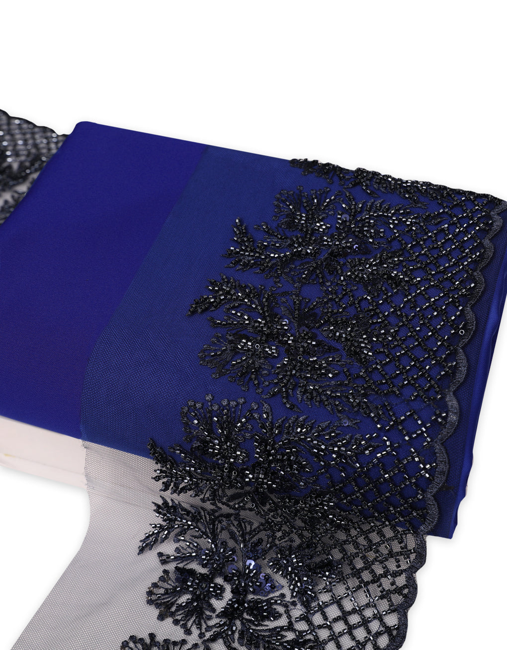 Aurora Blossom Beaded Border Lace Mix and Match - (Royal Blue) + Satin (Royal Blue)