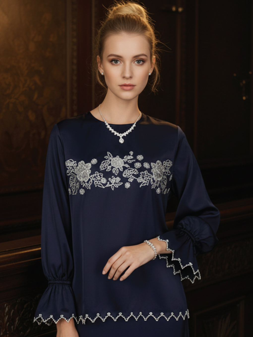 BAJU KURUNG KEDAH CHARLITA (NAVY BLUE)
