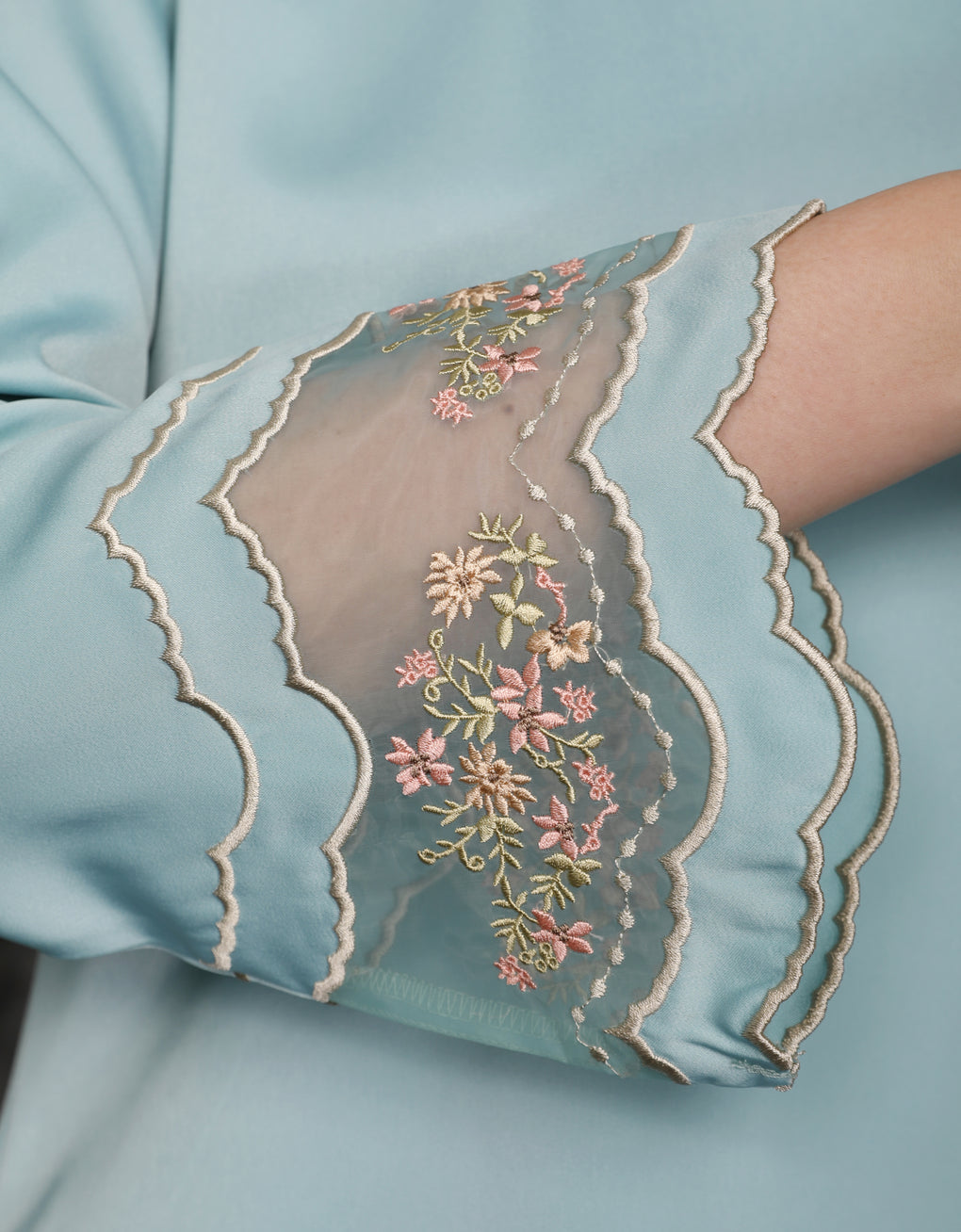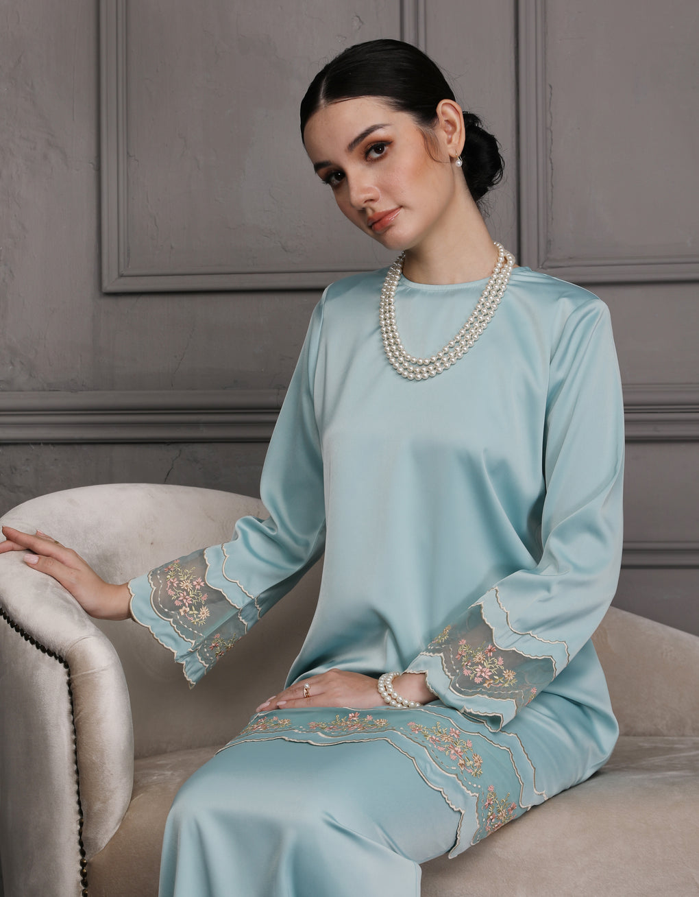 'Baju Kurung Pahang Moden Everlee' blends tradition with a modern touch. Crafted from luxurious Italian Silky Satin and adorned with multi-color embroidery, it offers both elegance and comfort in a long, flattering silhouette. A timeless choice for formal events or refined everyday wear.