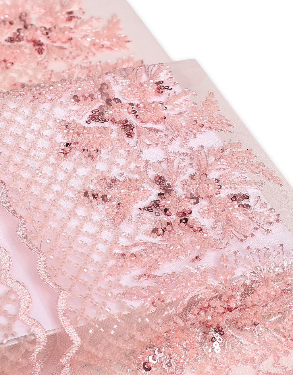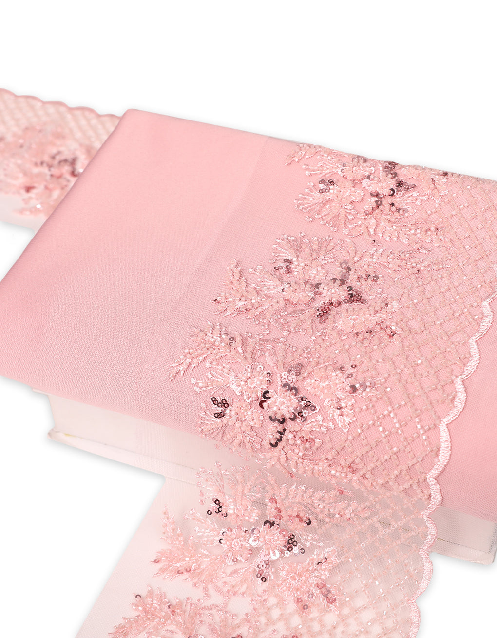 Aurora Blossom Beaded Border Lace Mix and Match - (Pink) + Satin (Pink)