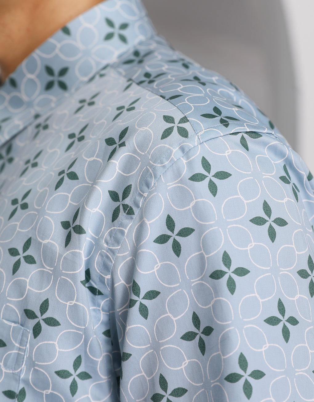 Regular fit collar shirt with short sleeves and featuring a chest patch pocket and button fastening on the front