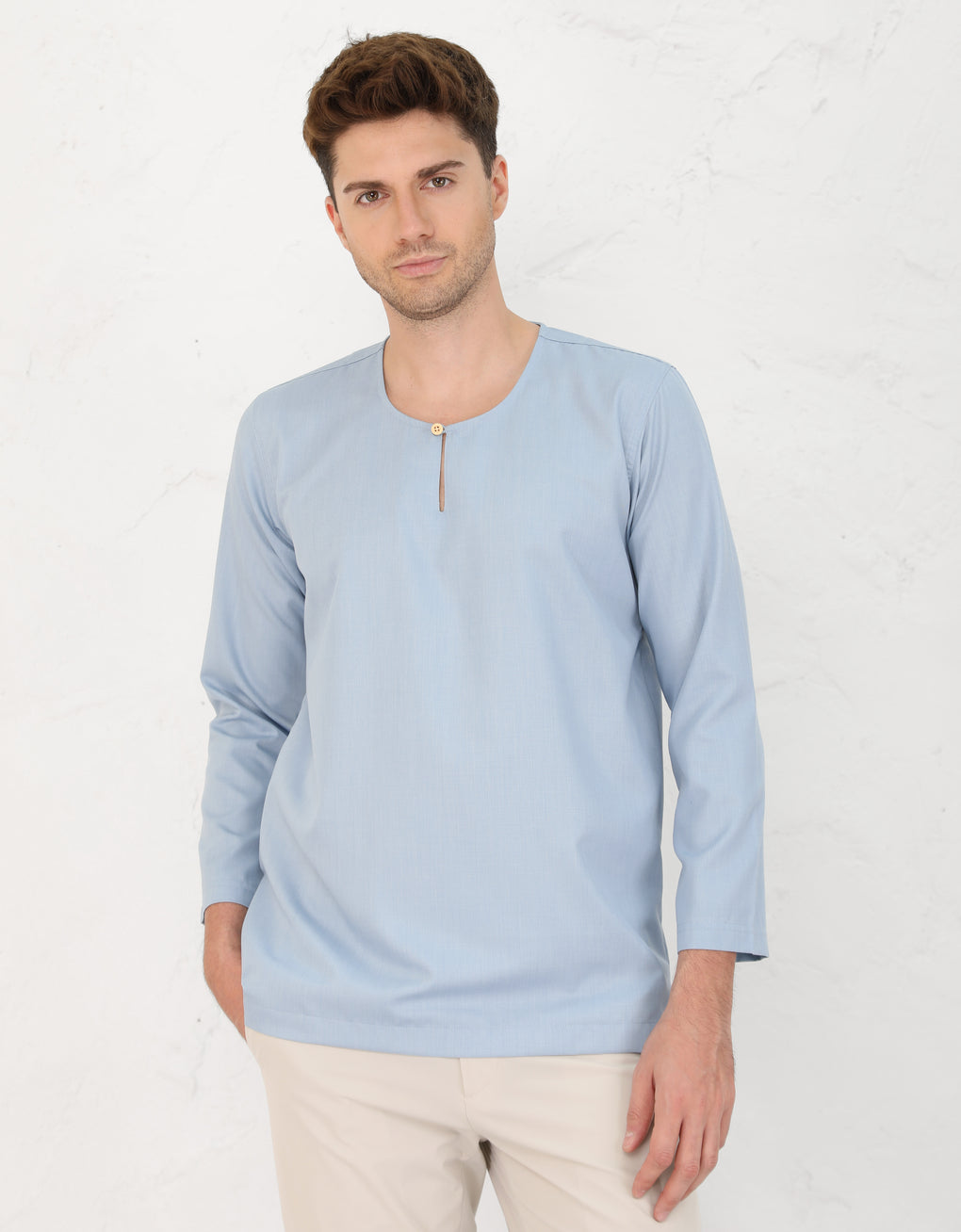 ✿ Round neck with key-hole and button design