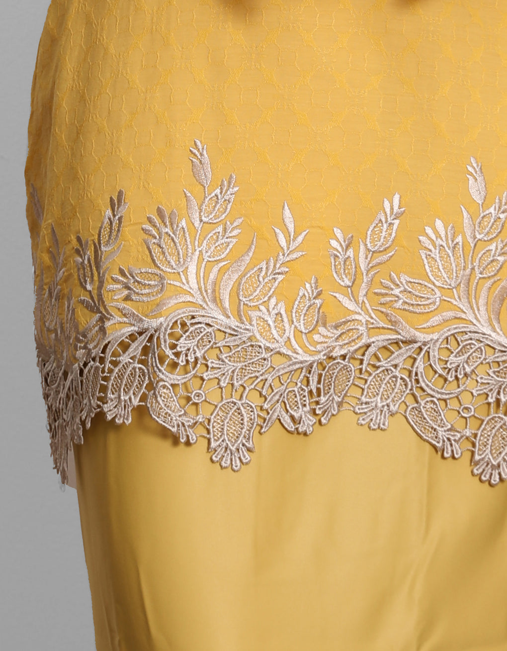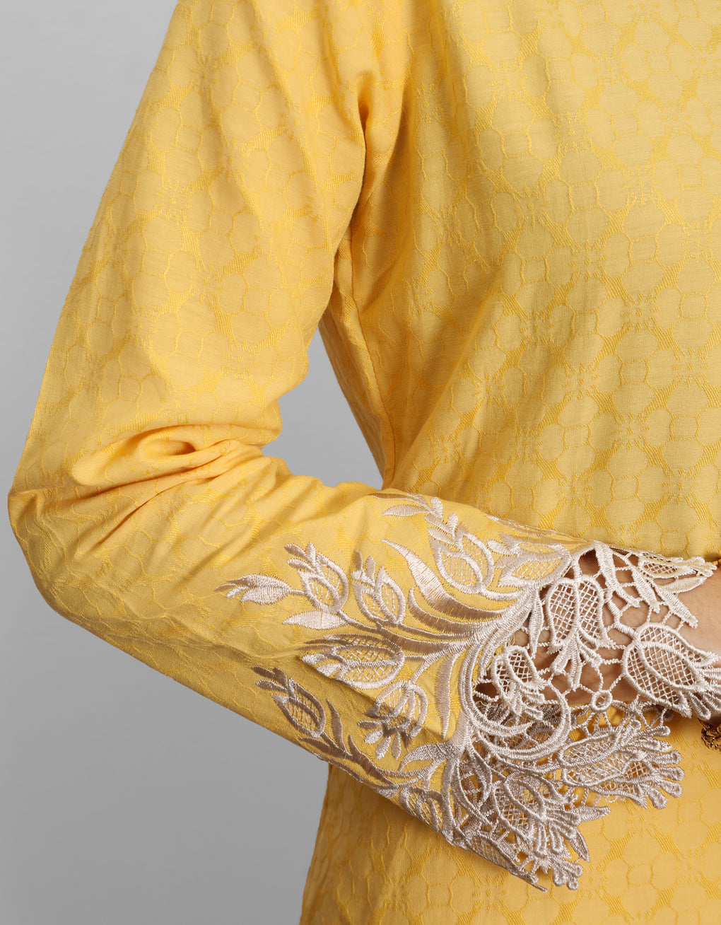 Material: Premium Cotton Jacquard - Crafted from a soft and breathable cotton fabric with a notable jacquard weave, enhanced with embroidered lace.