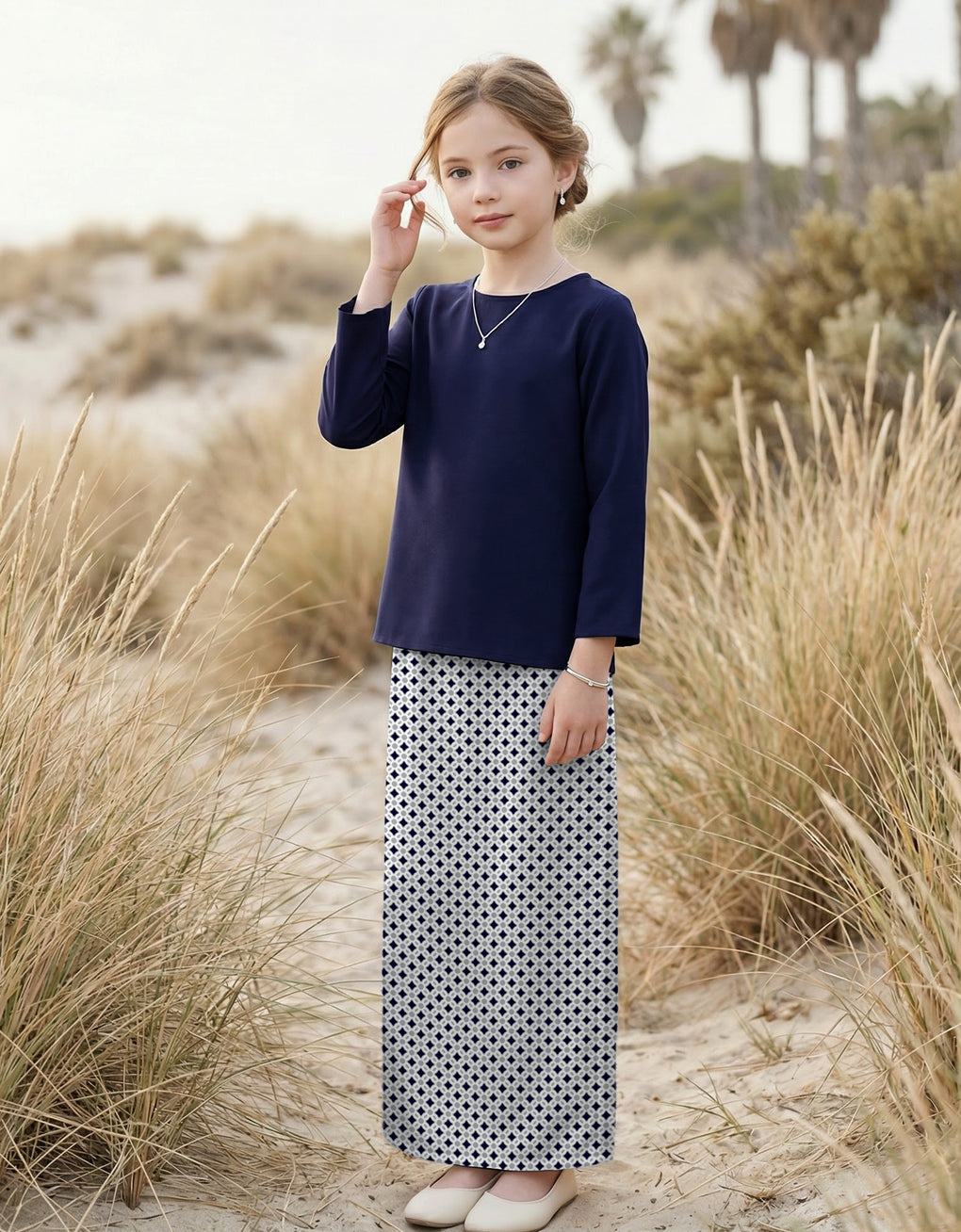 KIDS BAJU KURUNG KEDAH AYDA (NAVY BLUE)