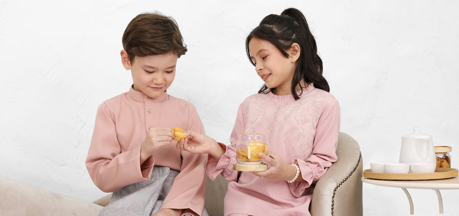 PRODUCT DETAILS Kids Baju Kurung Pahang Elina Material:Top - Made using a luxurious floral pattern single-tone lace, delicately sewn for a rich and stunning look. The interlining are made of soft hand-feel cotton voile that surely will give your children...