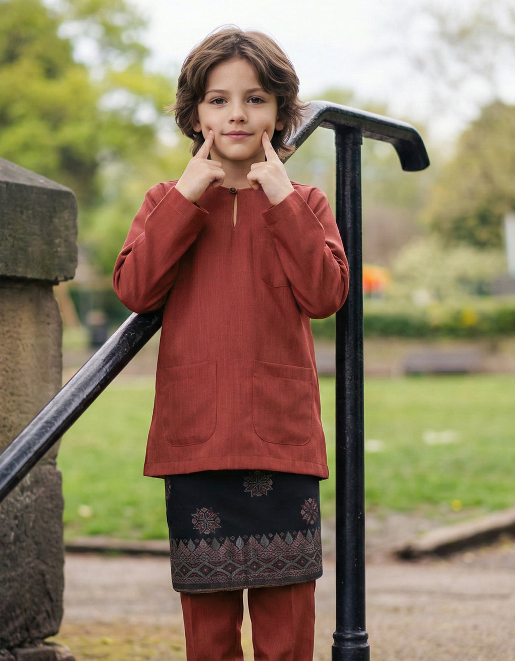 KIDS BAJU MELAYU JOHOR RAES (RED WINE)