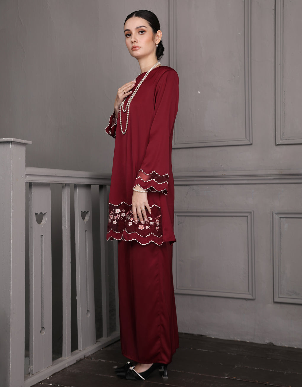 BAJU KURUNG PAHANG MODEN NERIA (MAROON)