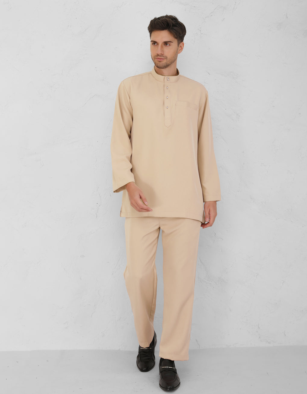 A Modern take on the classic Baju Melayu Cekak Musang  - clean lines, tailored fit, and refined details for a sleek traditional look. Perfect for Raya, Wedding or formal events. This timeless piece blends heritage with cotemporary style.