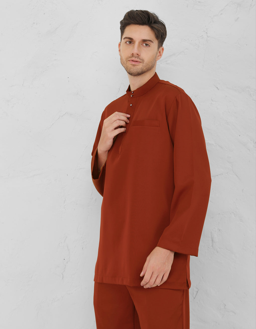 A Modern take on the classic Baju Melayu Cekak Musang  - clean lines, tailored fit, and refined details for a sleek traditional look. Perfect for Raya, Wedding or formal events. This timeless piece blends heritage with cotemporary style.