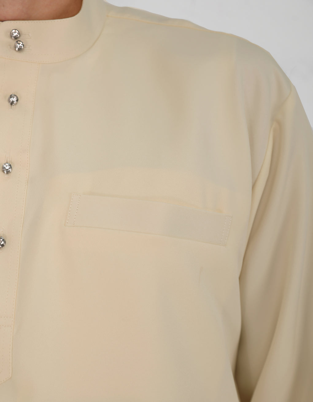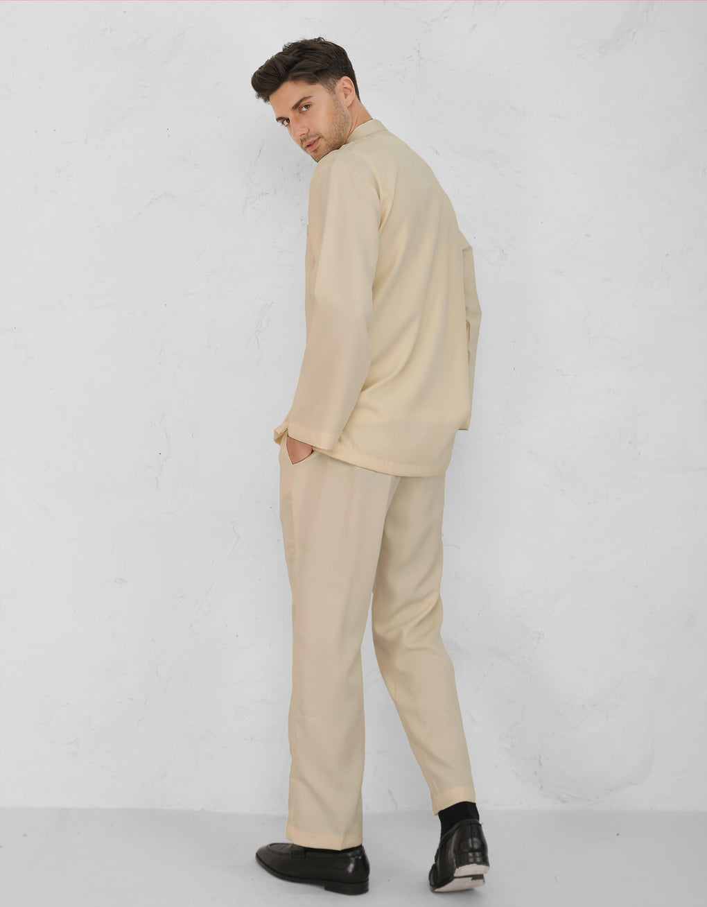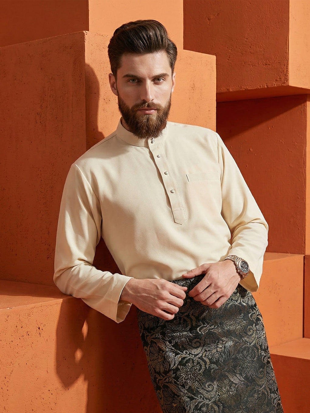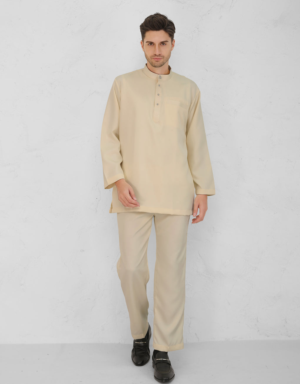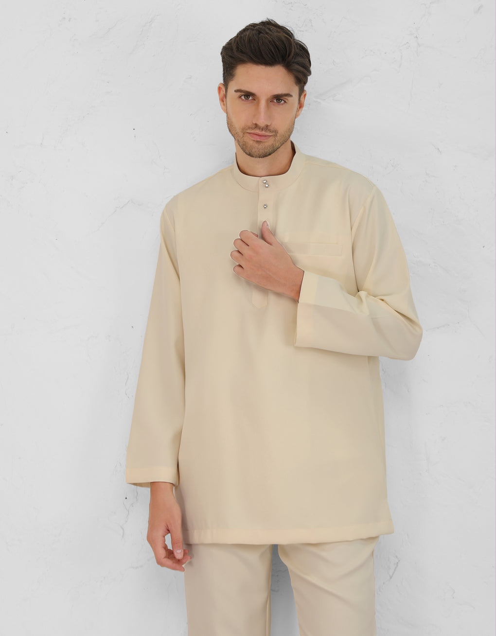 A Modern take on the classic Baju Melayu Cekak Musang  - clean lines, tailored fit, and refined details for a sleek traditional look. Perfect for Raya, Wedding or formal events. This timeless piece blends heritage with cotemporary style.