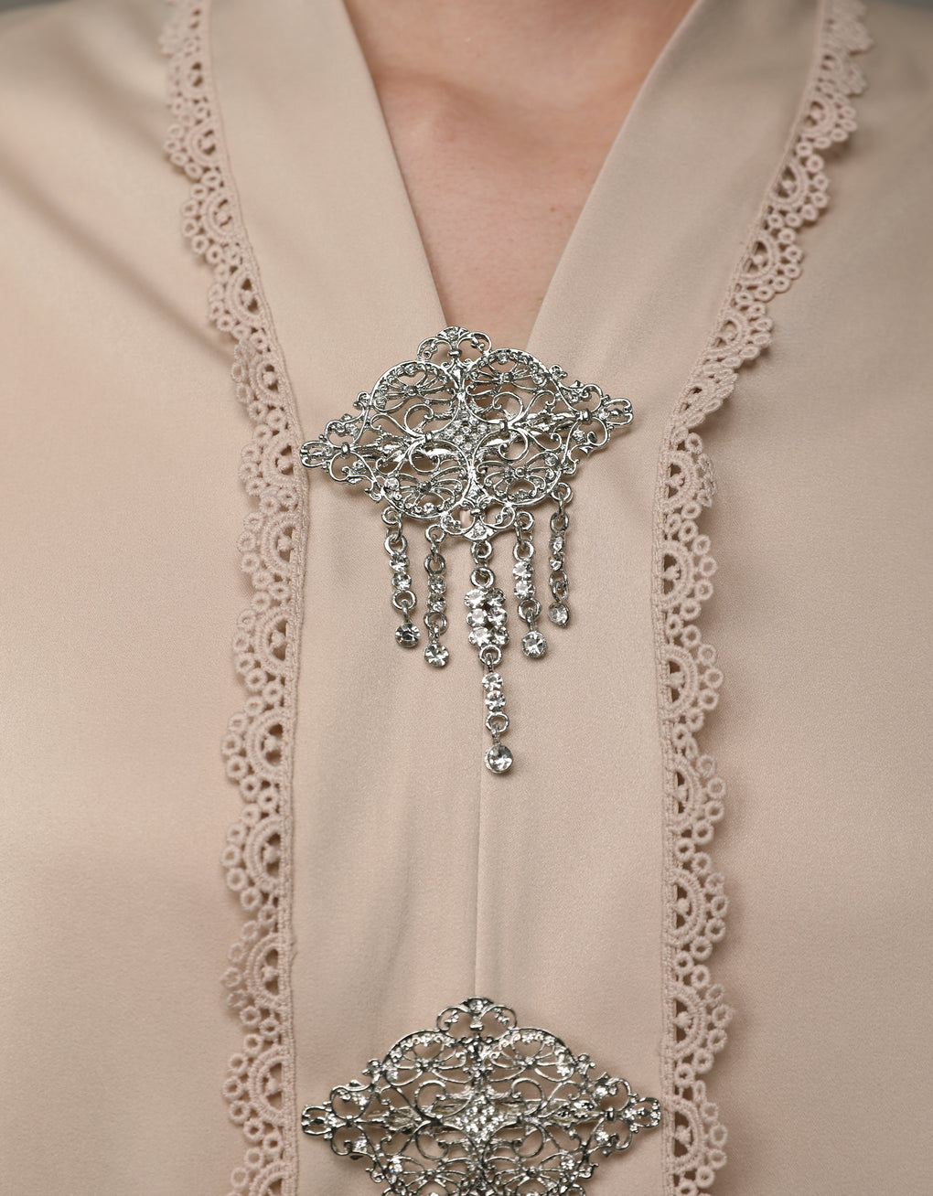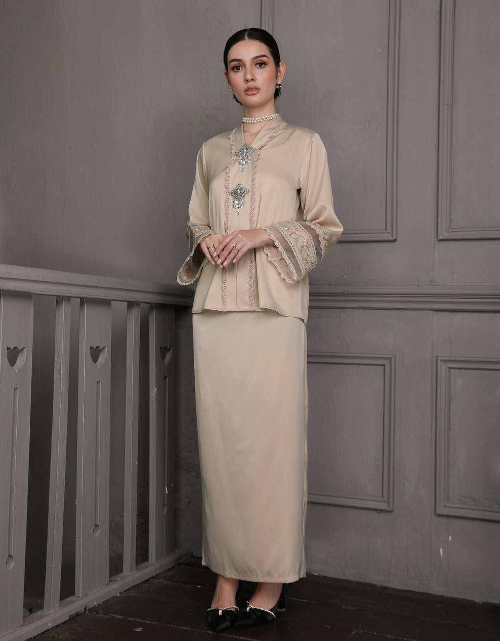 Embrace the elegance of 'Baju Kebaya Moden Jasmine', where timeless tradition meets modern flair. Made from luxurious fabric and detailed with delicate organdy embroidery on the sleeves, this piece is perfect for festive and formal occasions—bringing refined grace to any look.