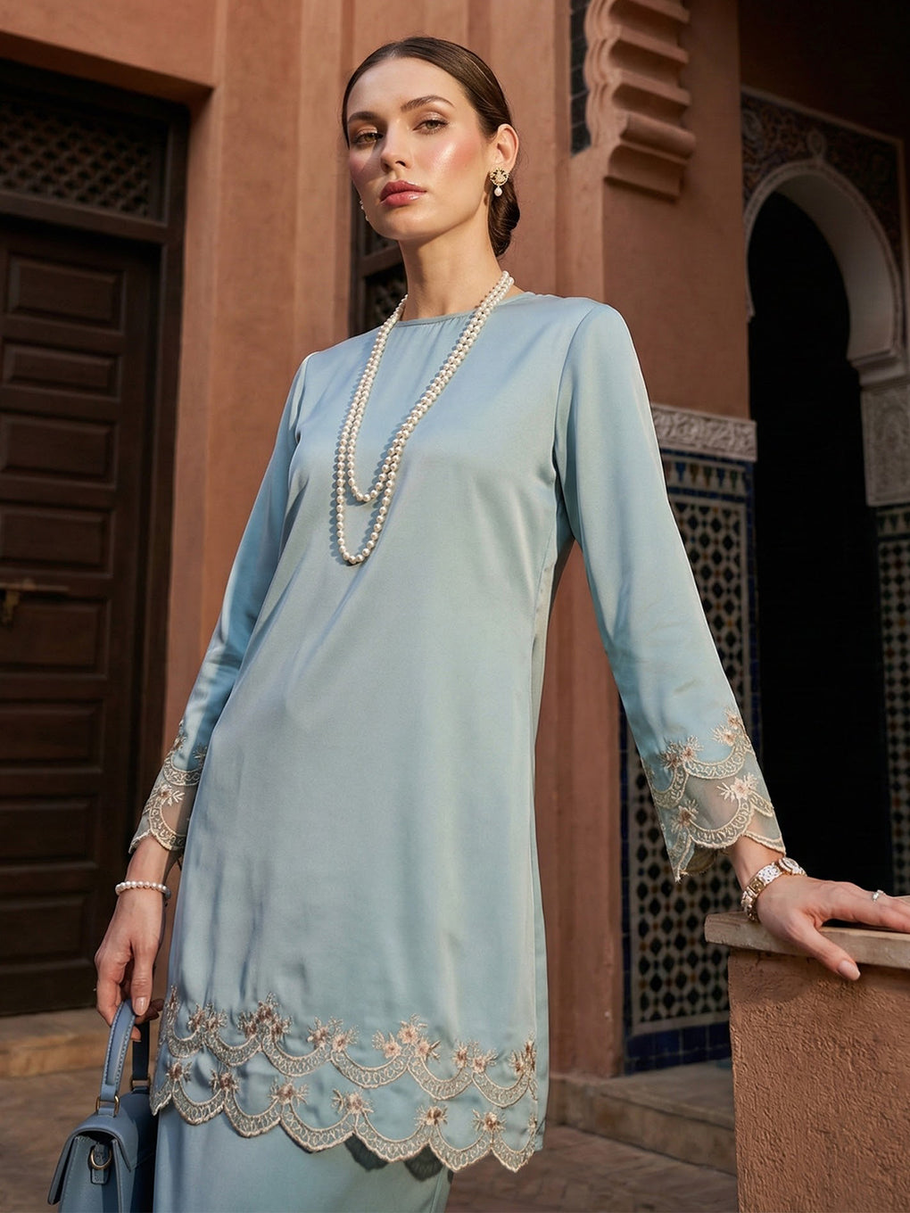 BAJU KURUNG PAHANG MODEN YASMINA (CAROLINA BLUE)