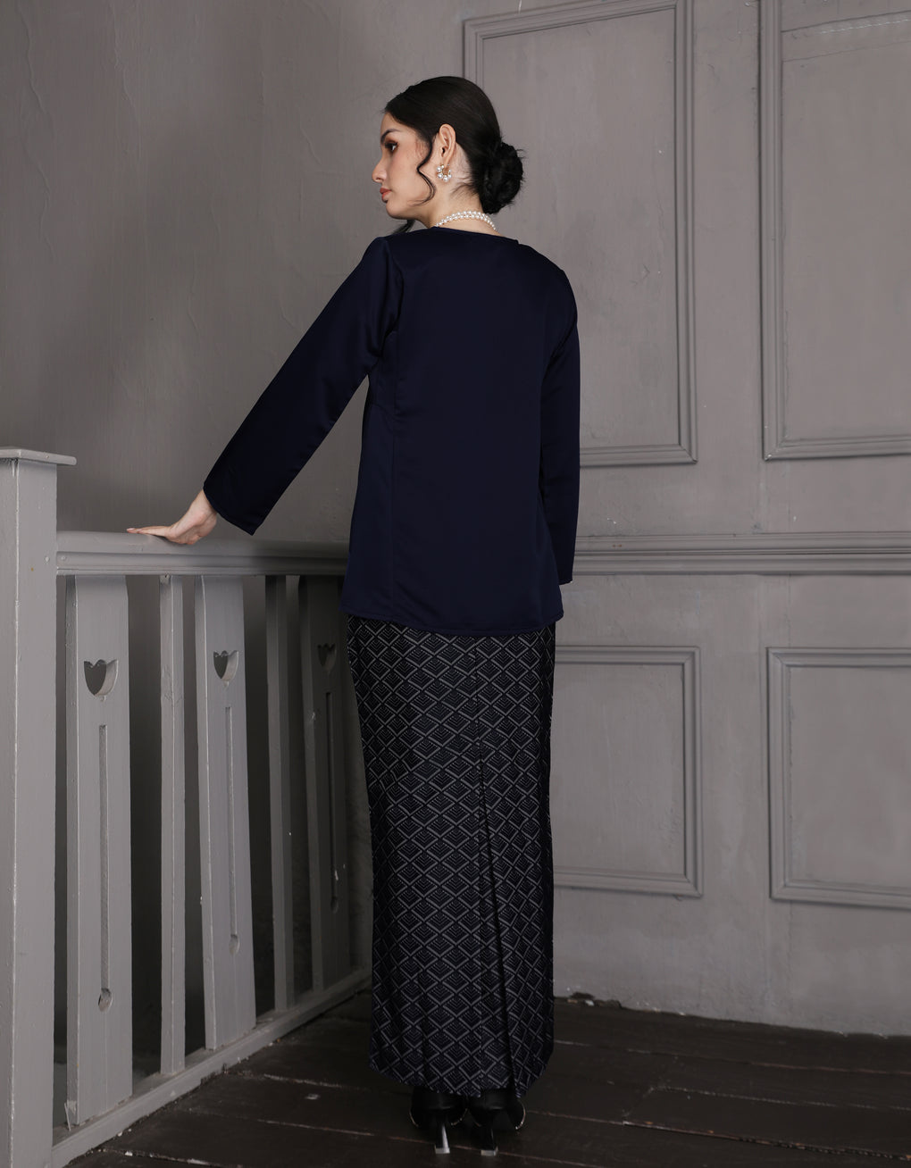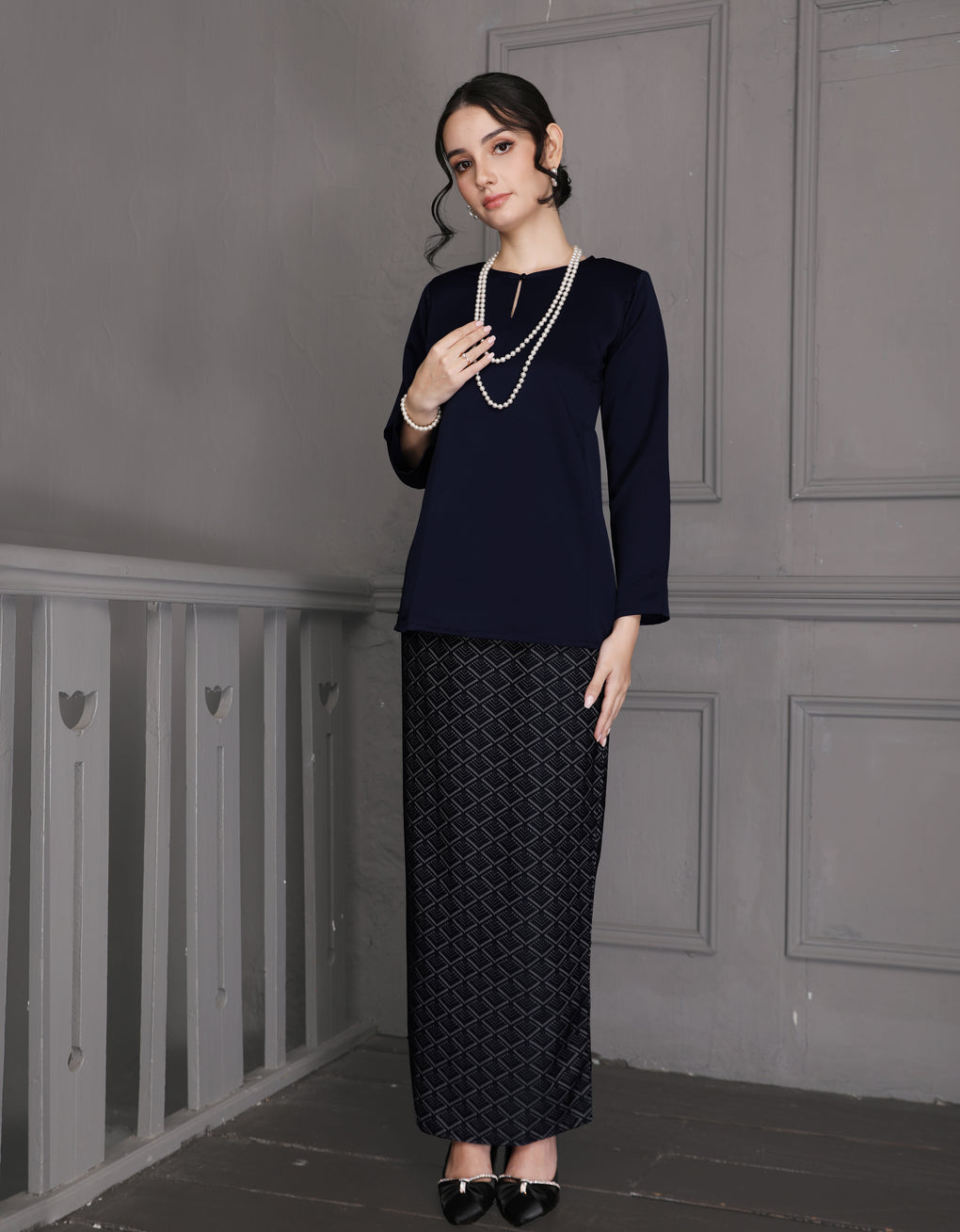 BAJU KURUNG KEDAH PESAK AFIRA (NAVY BLUE)