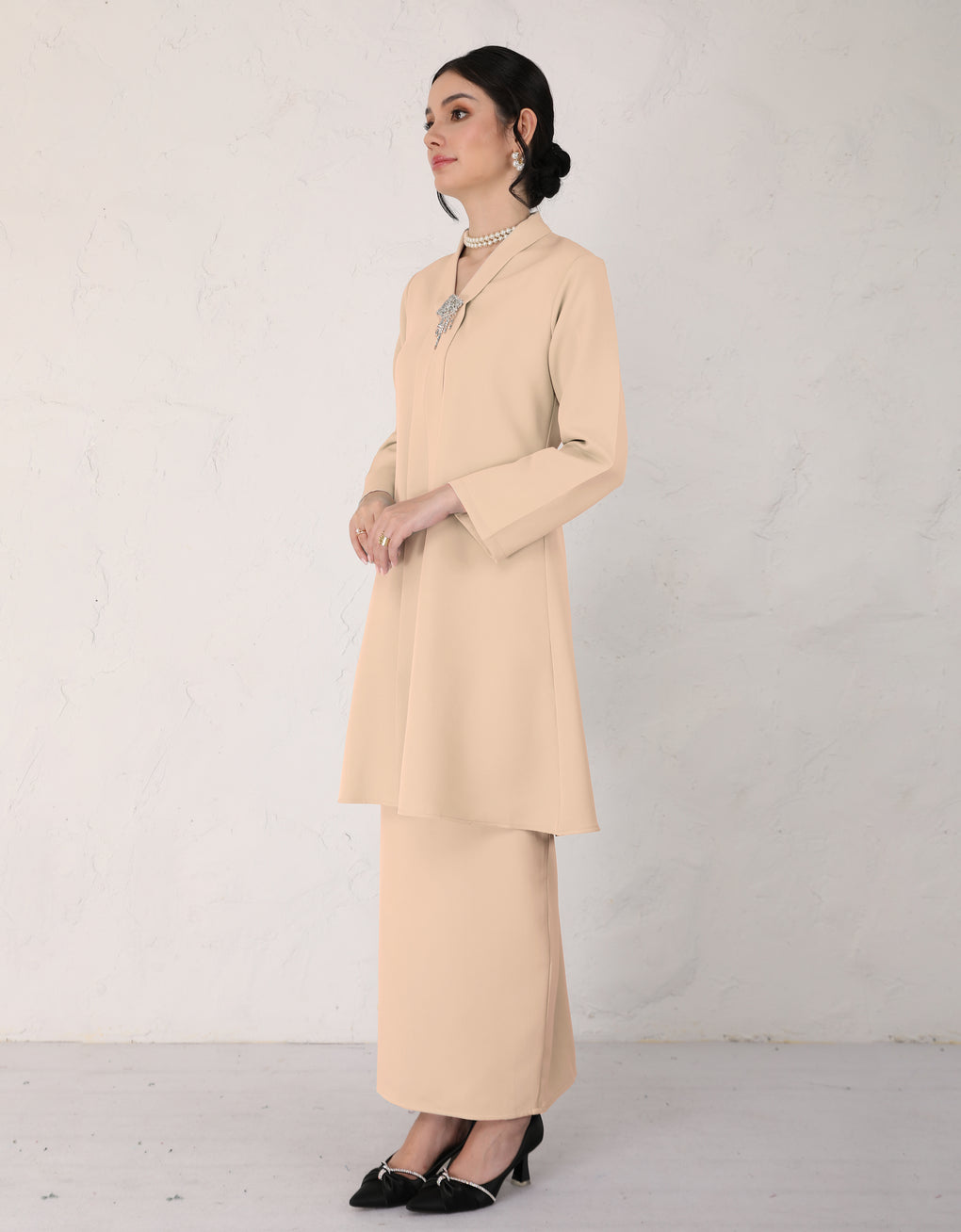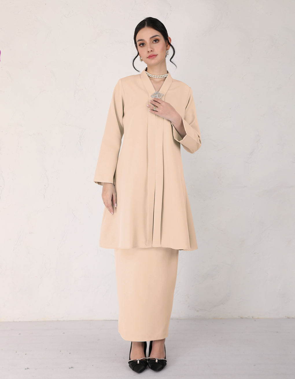 "Baju Kebarung Hawa" blends timeless tradition with modern grace. Crafted from premium Italian Crepe - Its flowing, long silhouette offers cultural authenticity and all-day comfort-perfectly for formal events or refined daily wear. This piece honors heritage while embracing today’s fashion sensibilities.