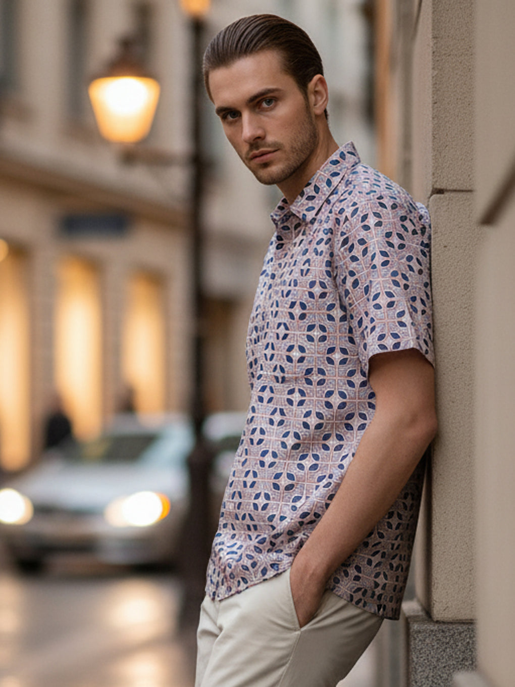 Regular fit collar shirt with short sleeves and button fastening on the front