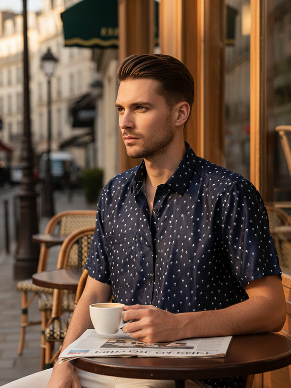 ZAYAN SHIRT SHORT SLEEVE (NAVY BLUE)