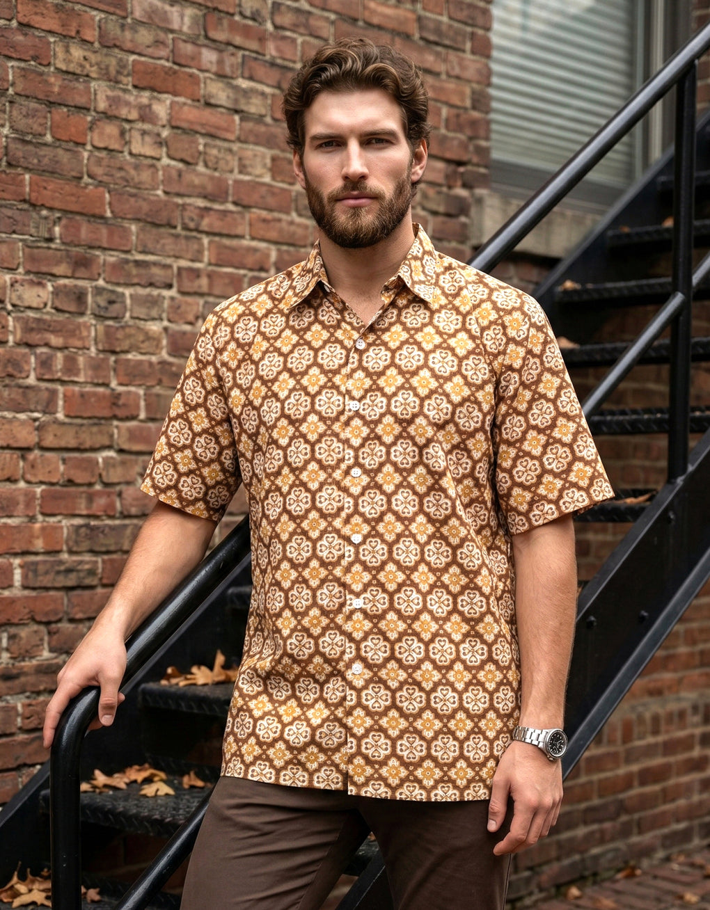 ✿ Regular fit collar shirt with short sleeves and button fastening on the front.