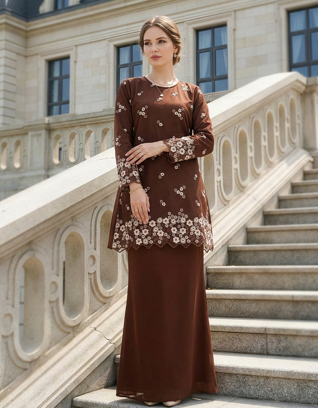 BAJU KURUNG MODEN KAMILA (RICH BROWN)