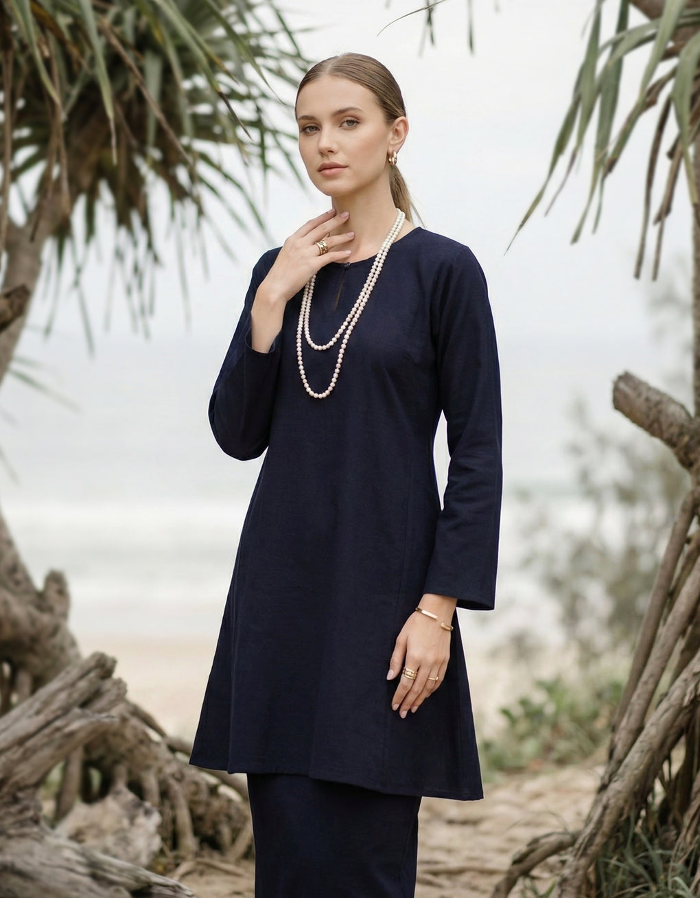 ✿ Notched round neck with pearl button