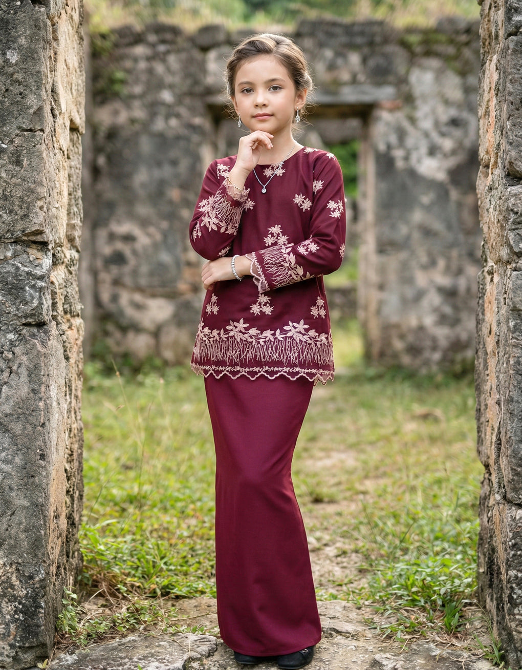 Crafted in a timeless Kedah cut, this piece ensures a comfortable fit for your little one. Delicate Floral Embroidered Lace creates a graceful blend of femininity and elegance perfect for any occasion.
