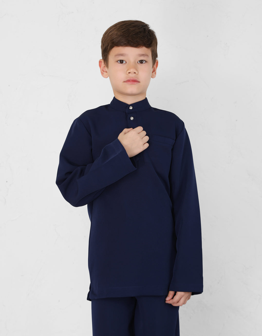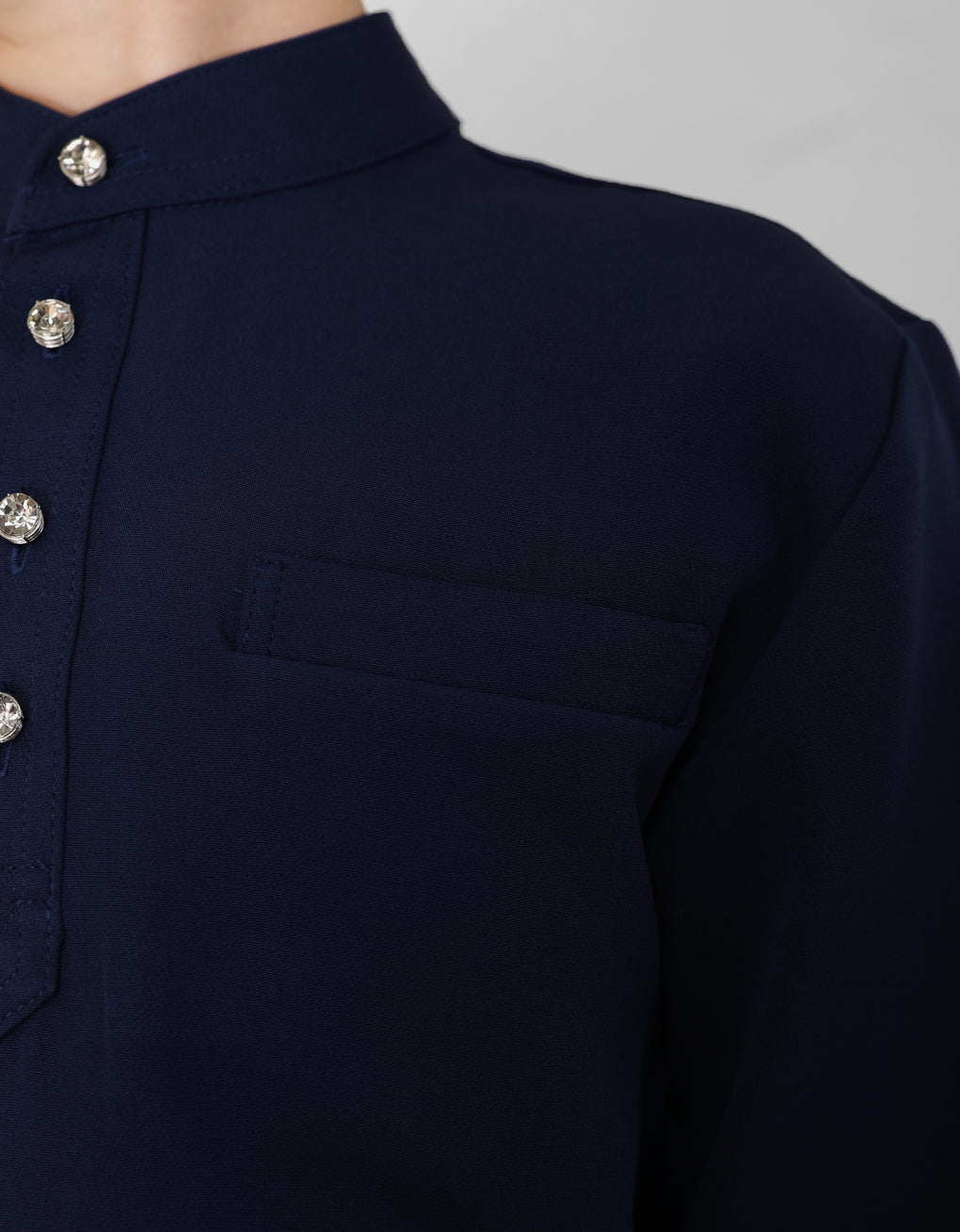 A Modern take on the classic Baju Melayu Cekak Musang - clean lines, tailored fit, and refined details for a sleek traditional look. Perfect for Raya, Wedding or formal events. This timeless piece blends heritage with cotemporary style.
