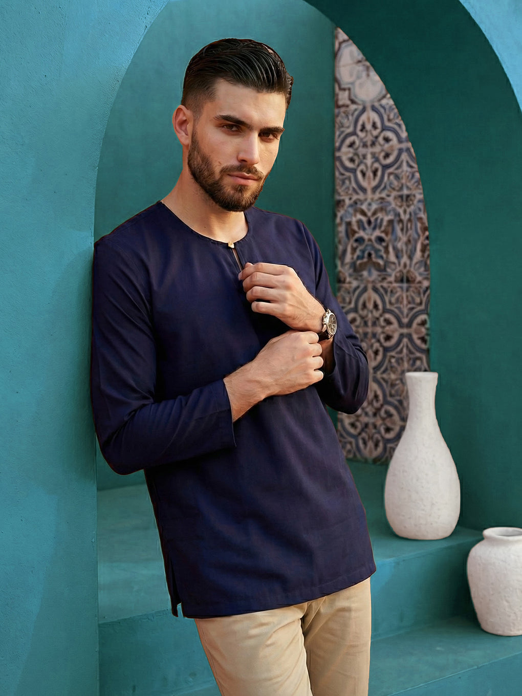 Elevate your style with our regular fit round neck kurta. The matched coloured buttons and long sleeves add a touch of sophistication, while the side pockets provides functionality and fashion. Perfect for any occasion, this kurta effortlessly combines comfort and elegance.