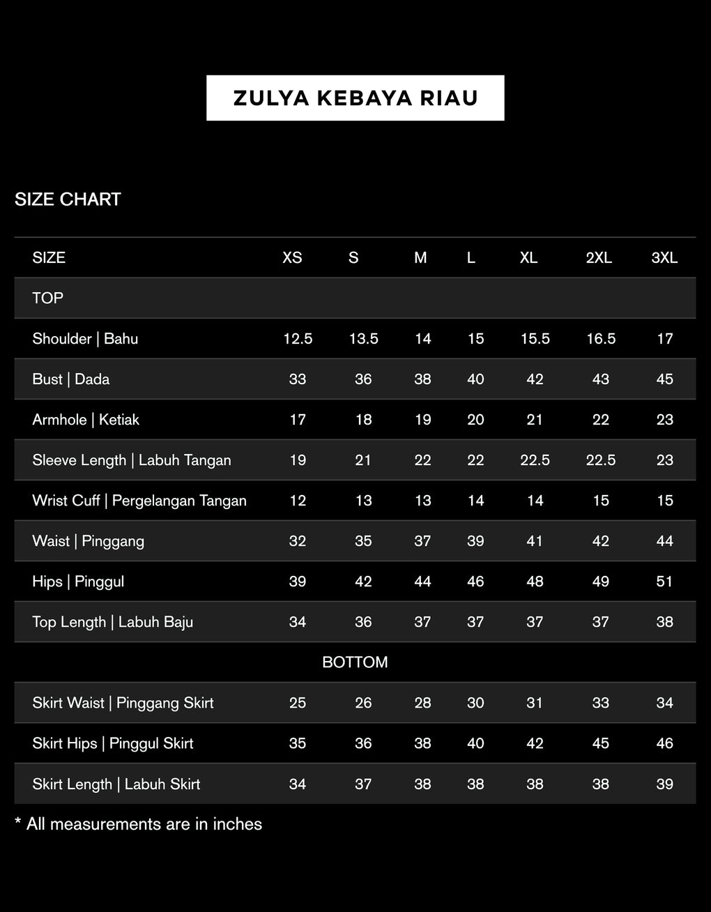 Skirt Length | Labuh Skirt 34 37 38 38 38 38 39