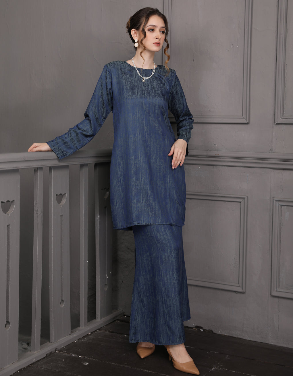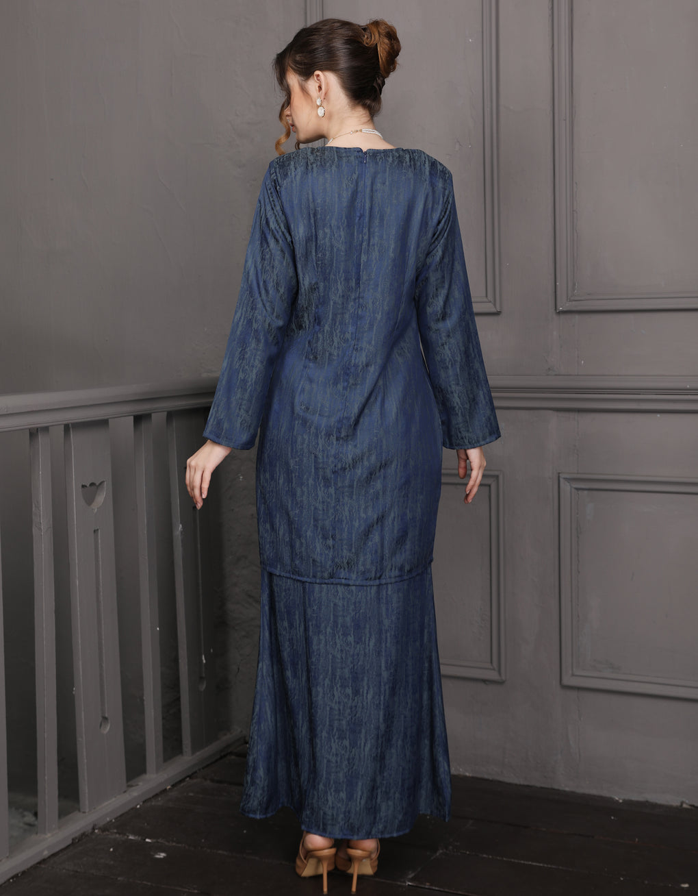BAJU KURUNG PAHANG MODEN GENEVIE (NAVY BLUE)