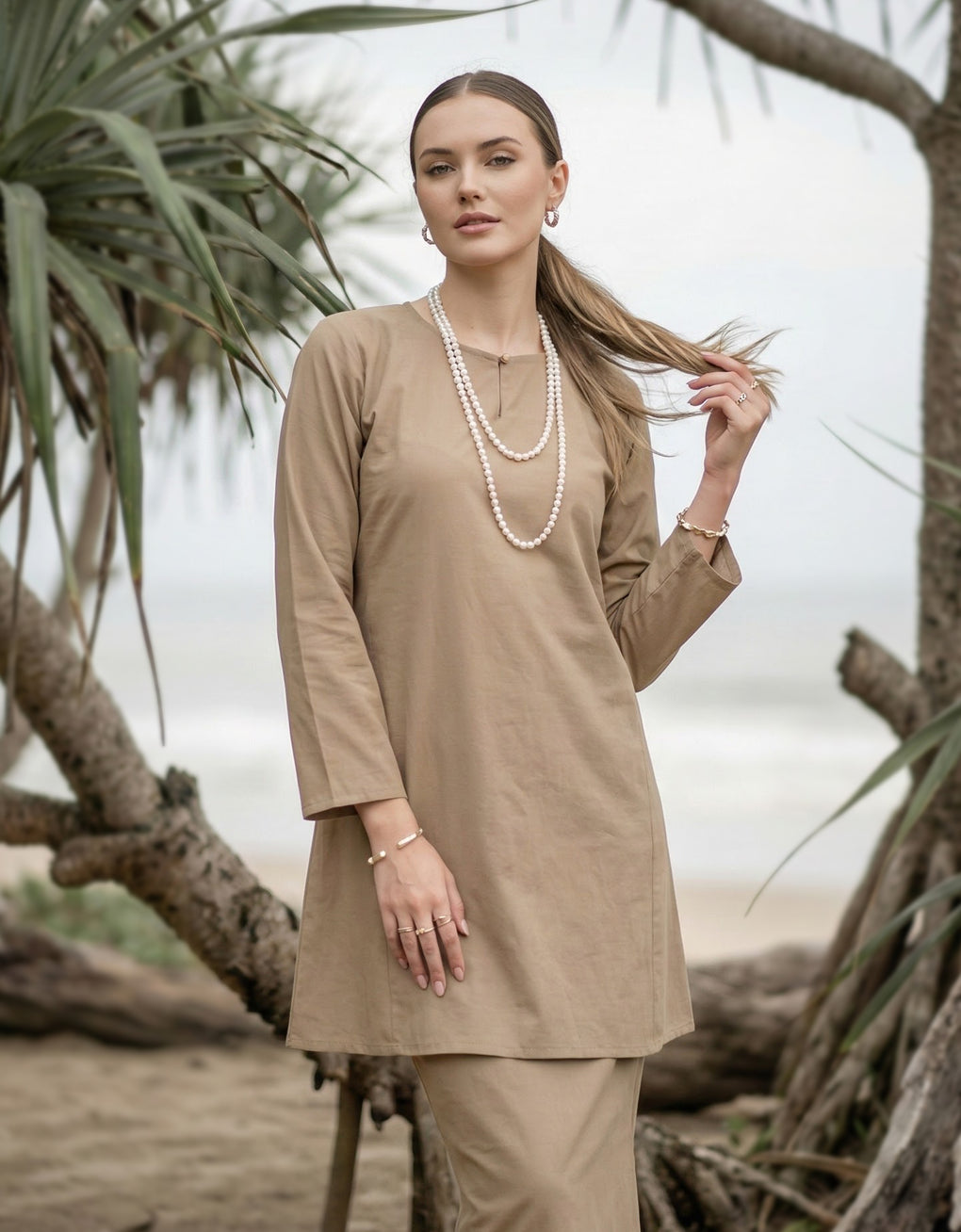 BAJU KURUNG PAHANG PESAK NAYALI (KHAKI)
