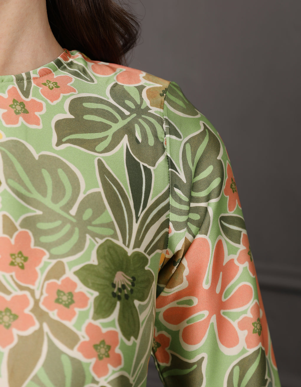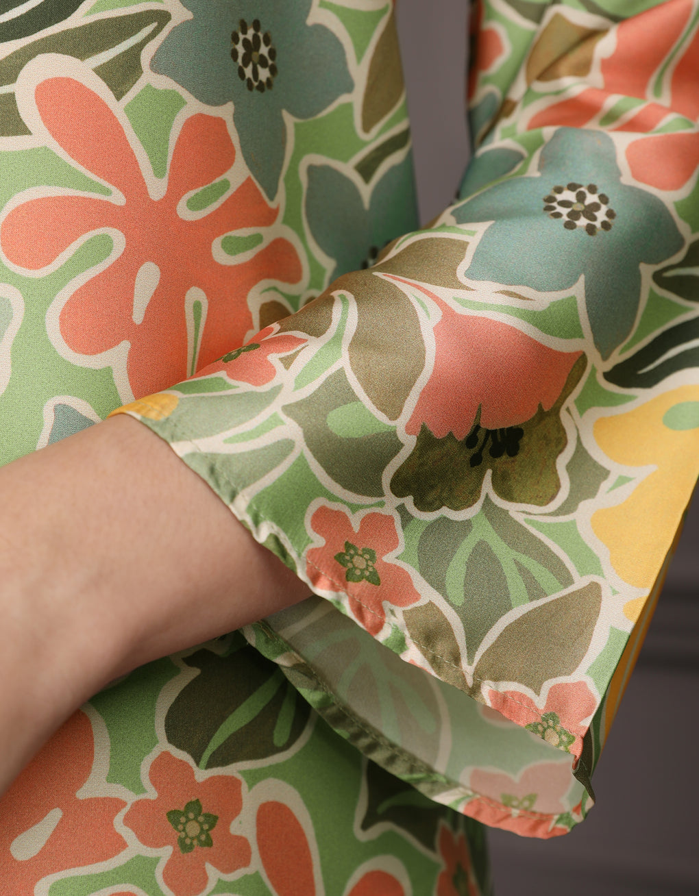 Material: Diore Silky Satin - The satin silk fabric boasts a glossy and elegant drape, featuring exclusive prints that add a touch of luster to the garment.